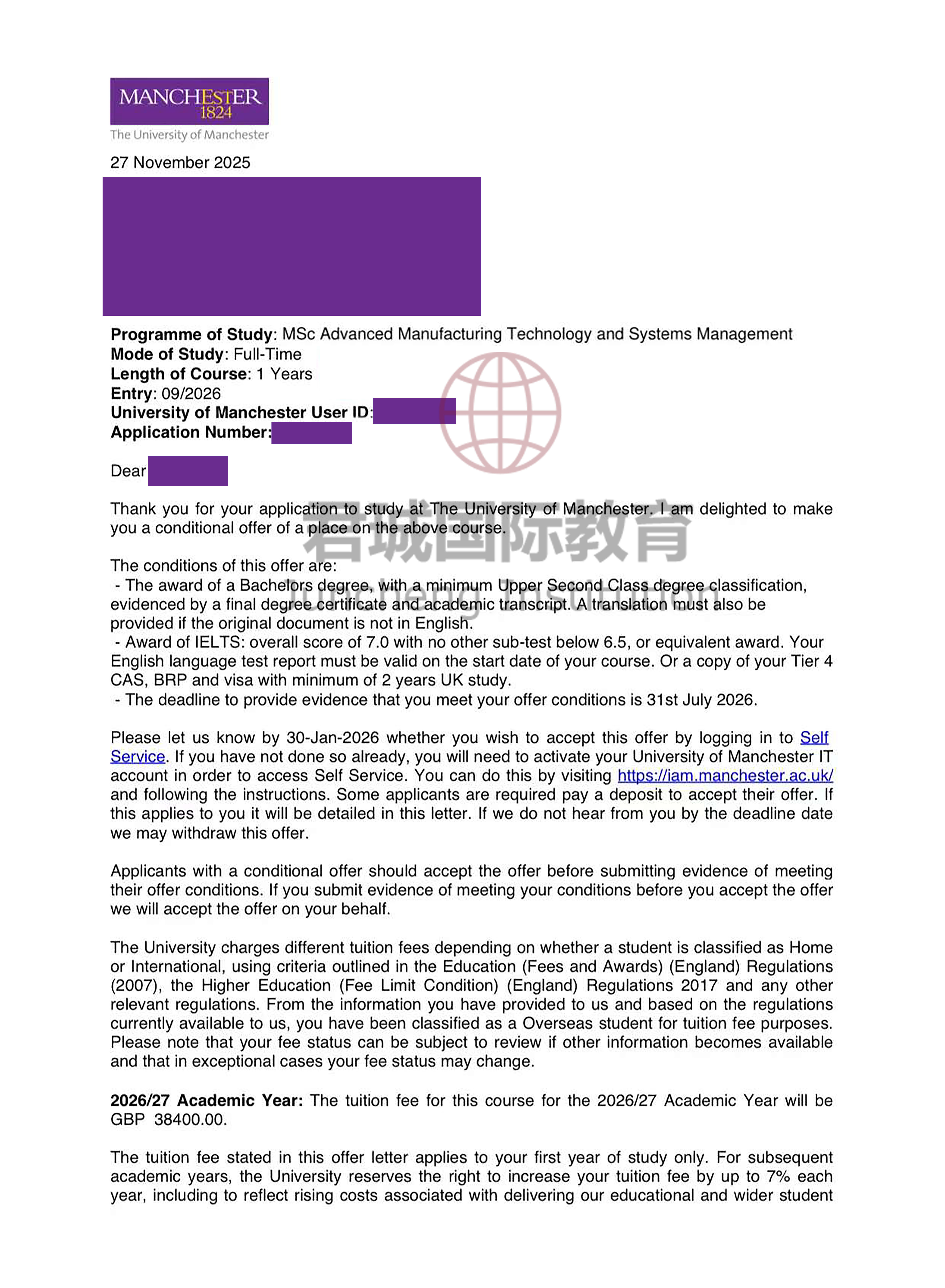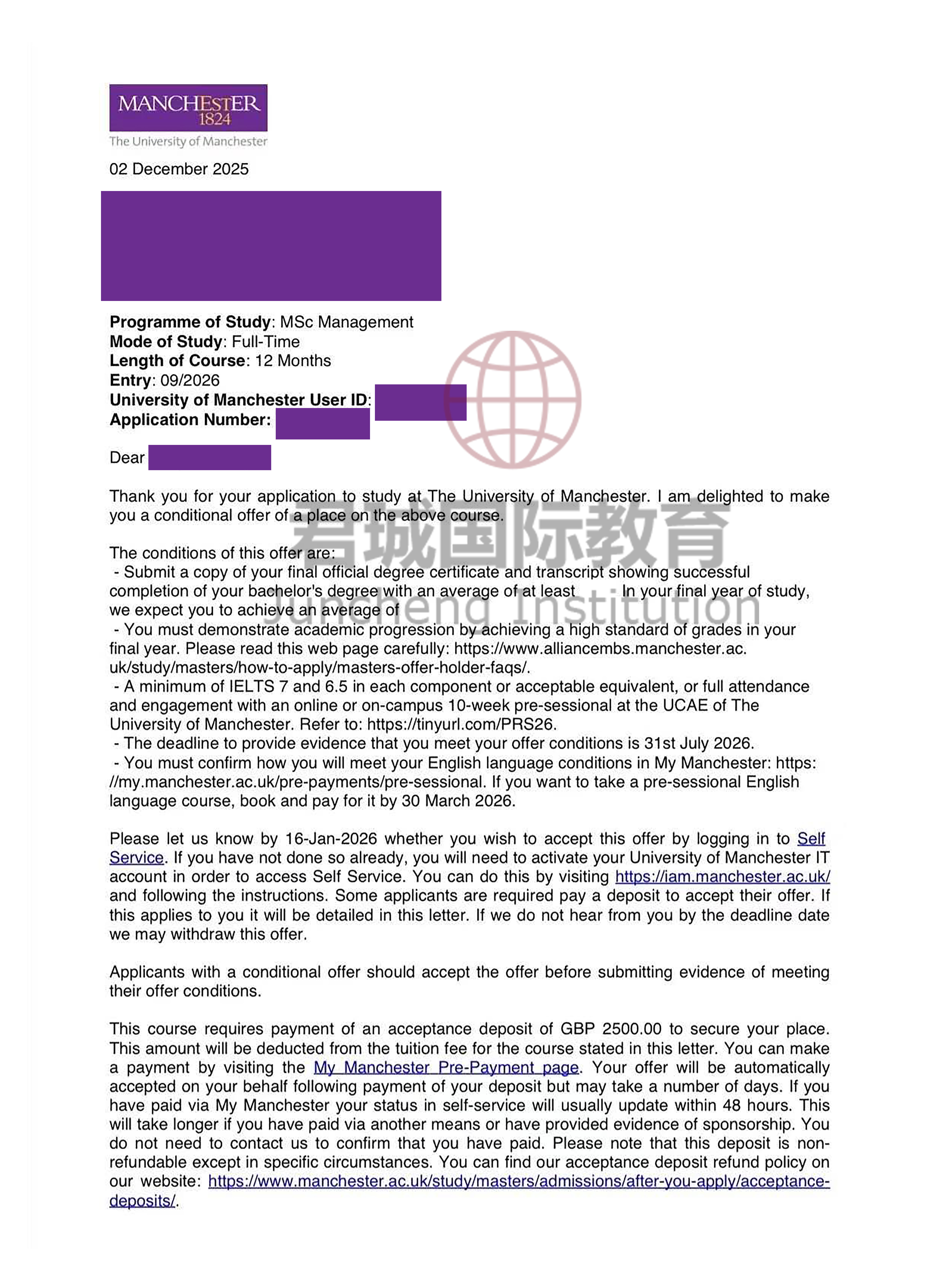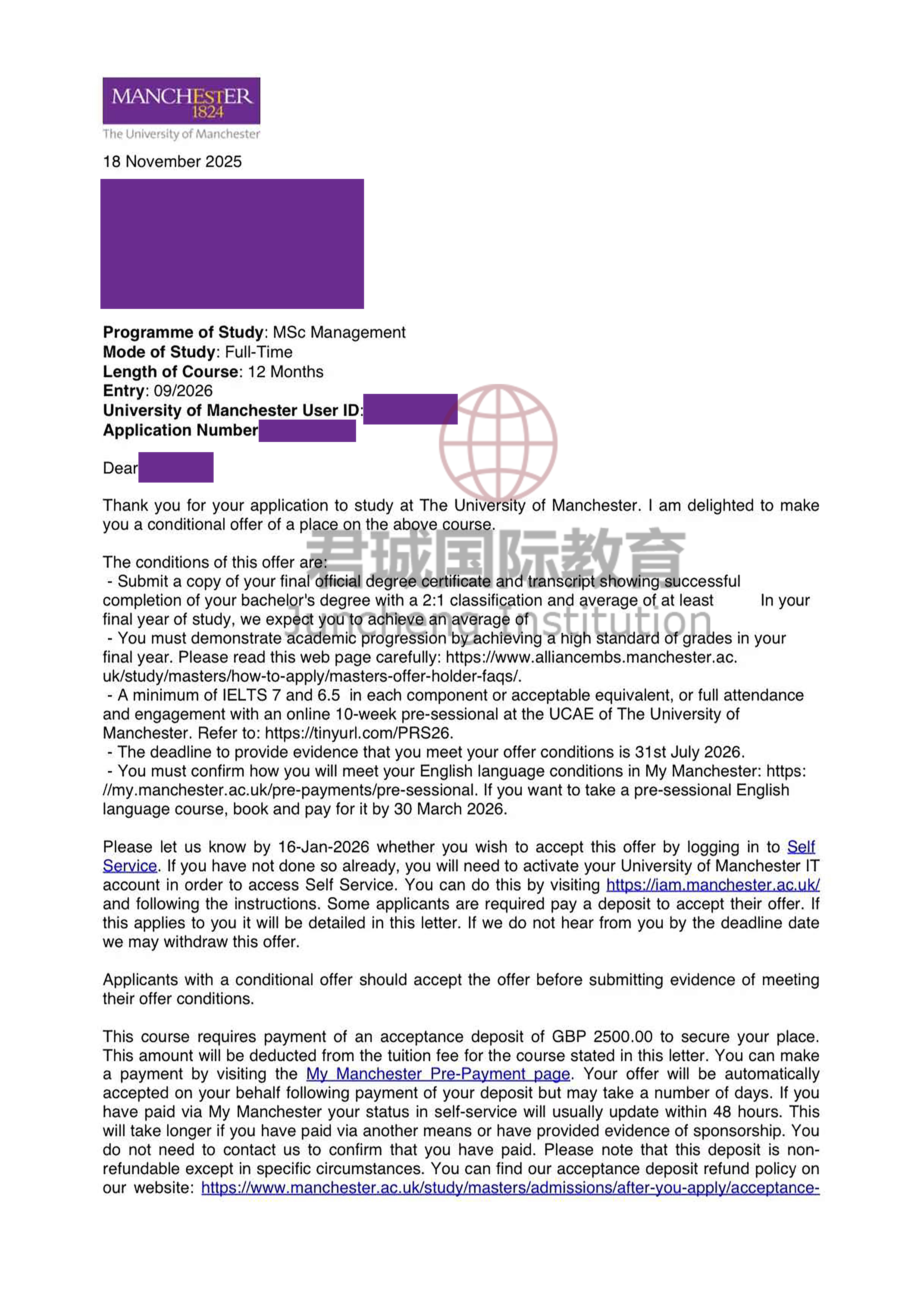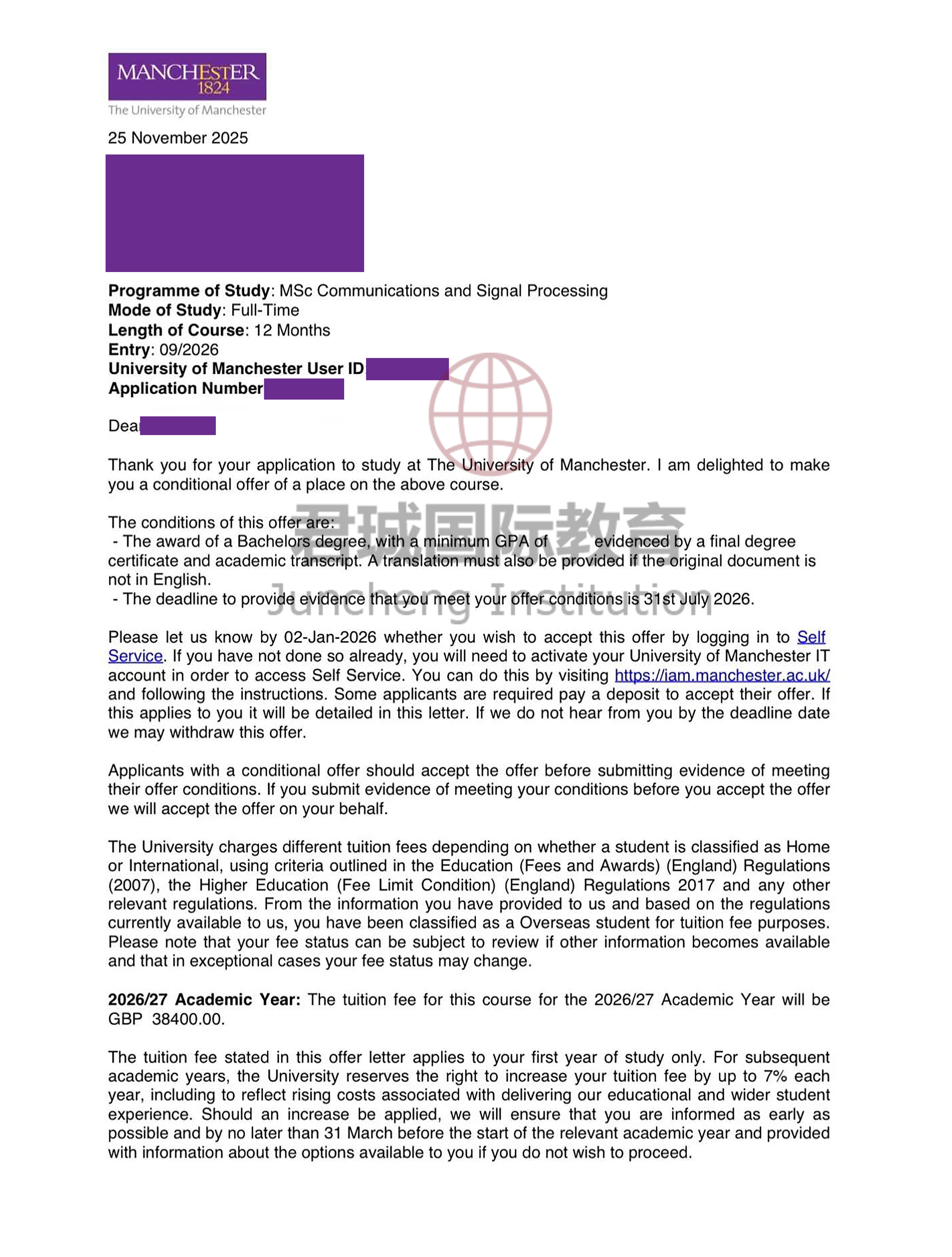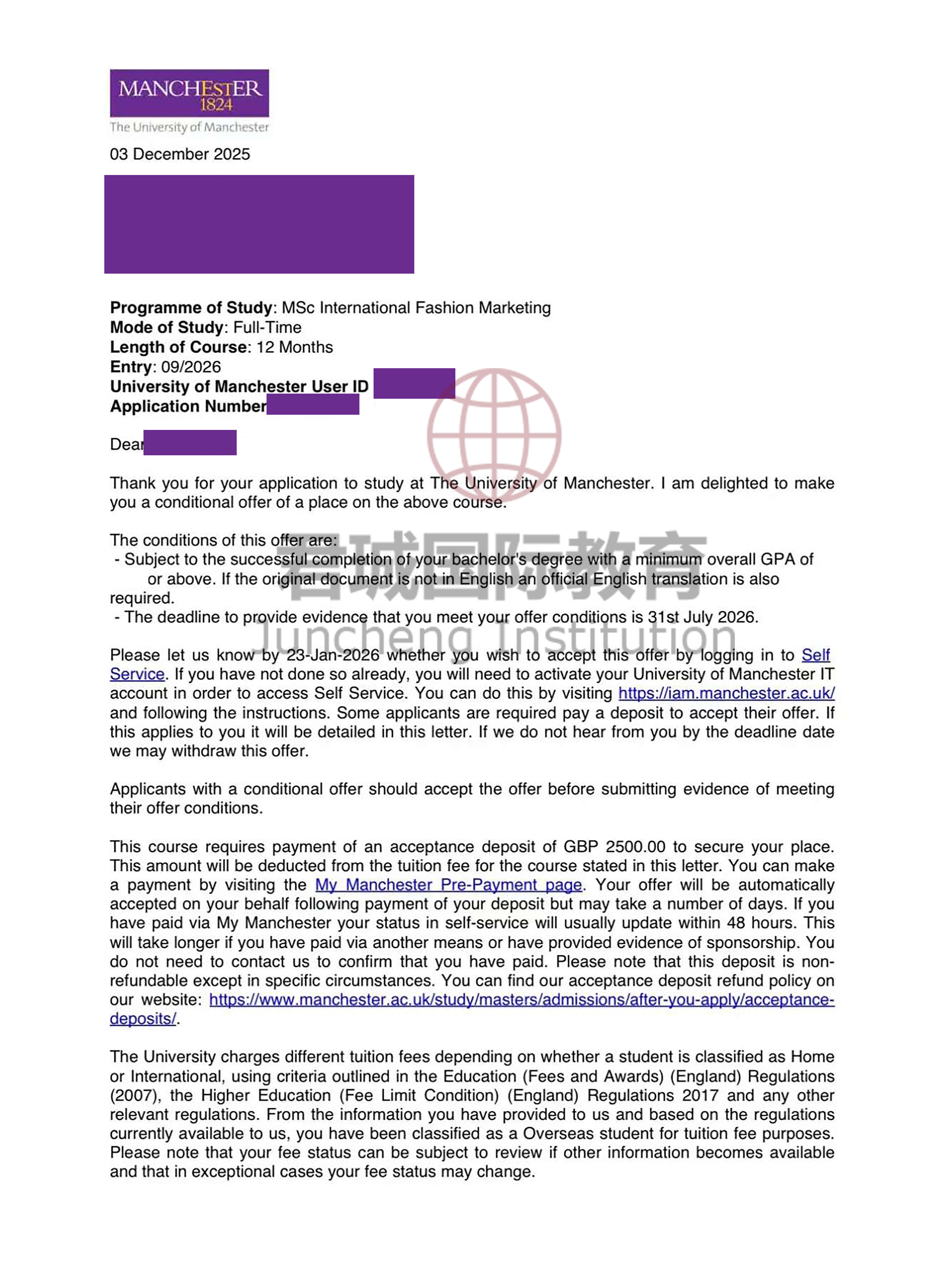 录取Offer:香港中文大学 The Chinese University of Hong Kong
