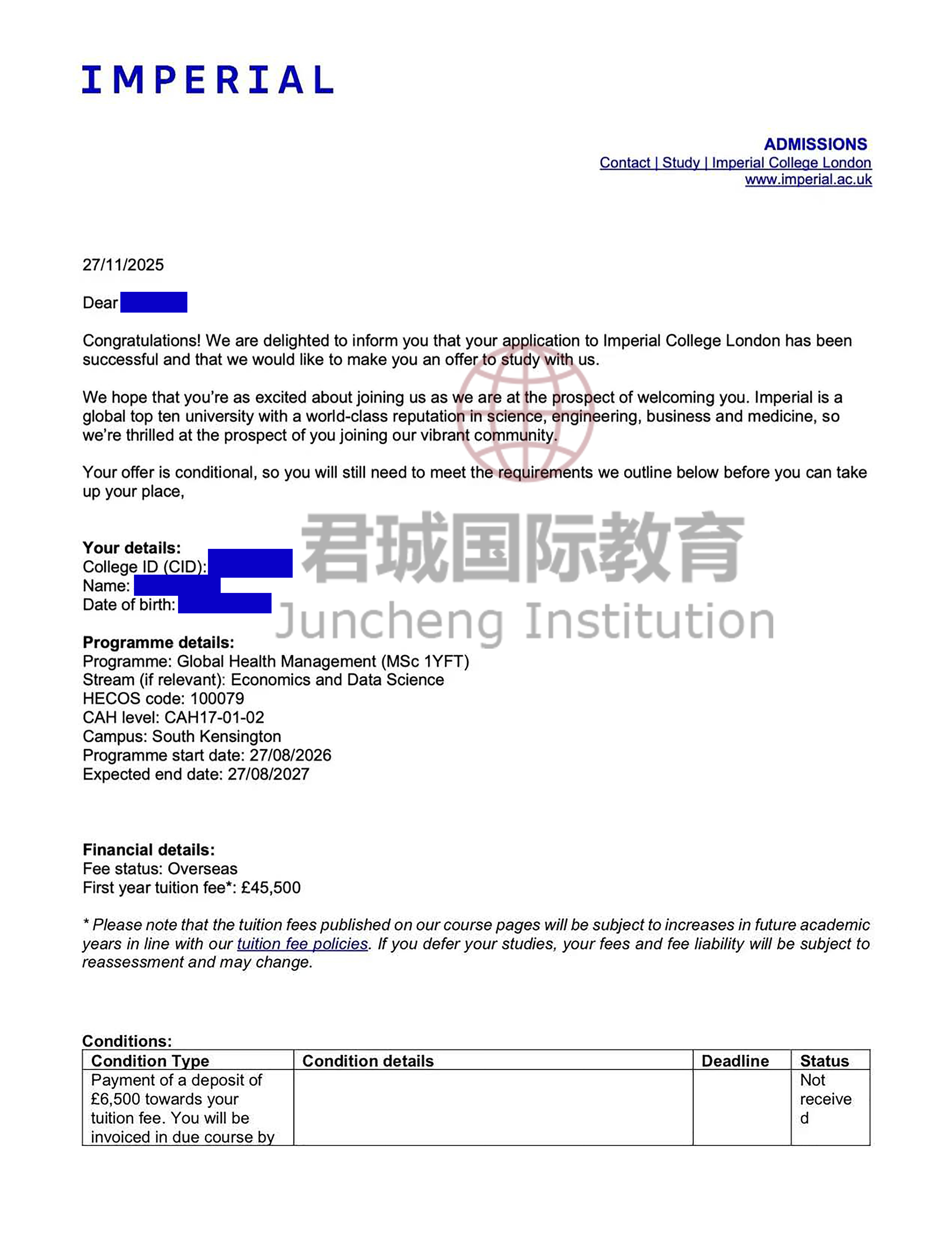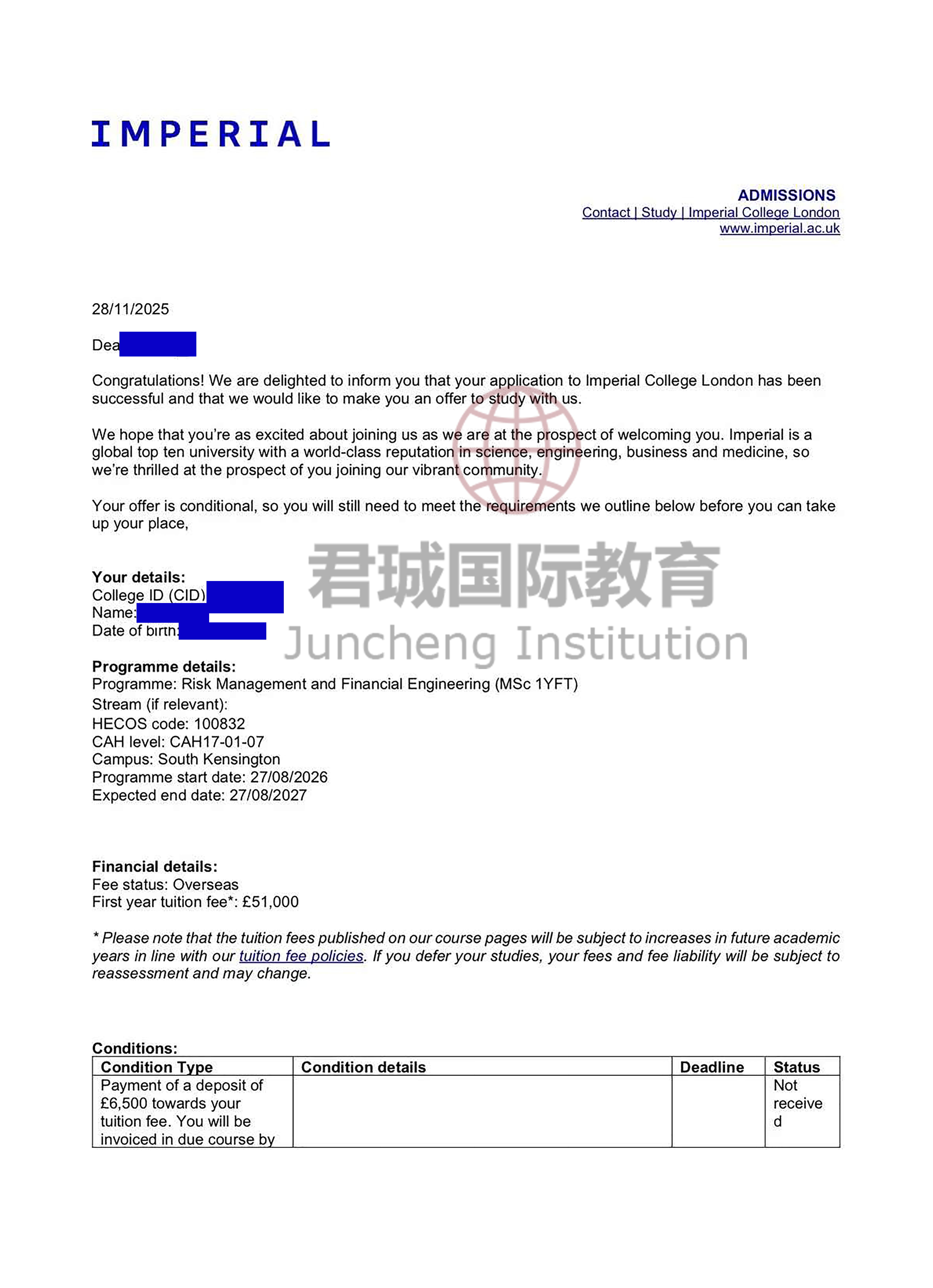 录取Offer:帝国理工学院 Imperial College London