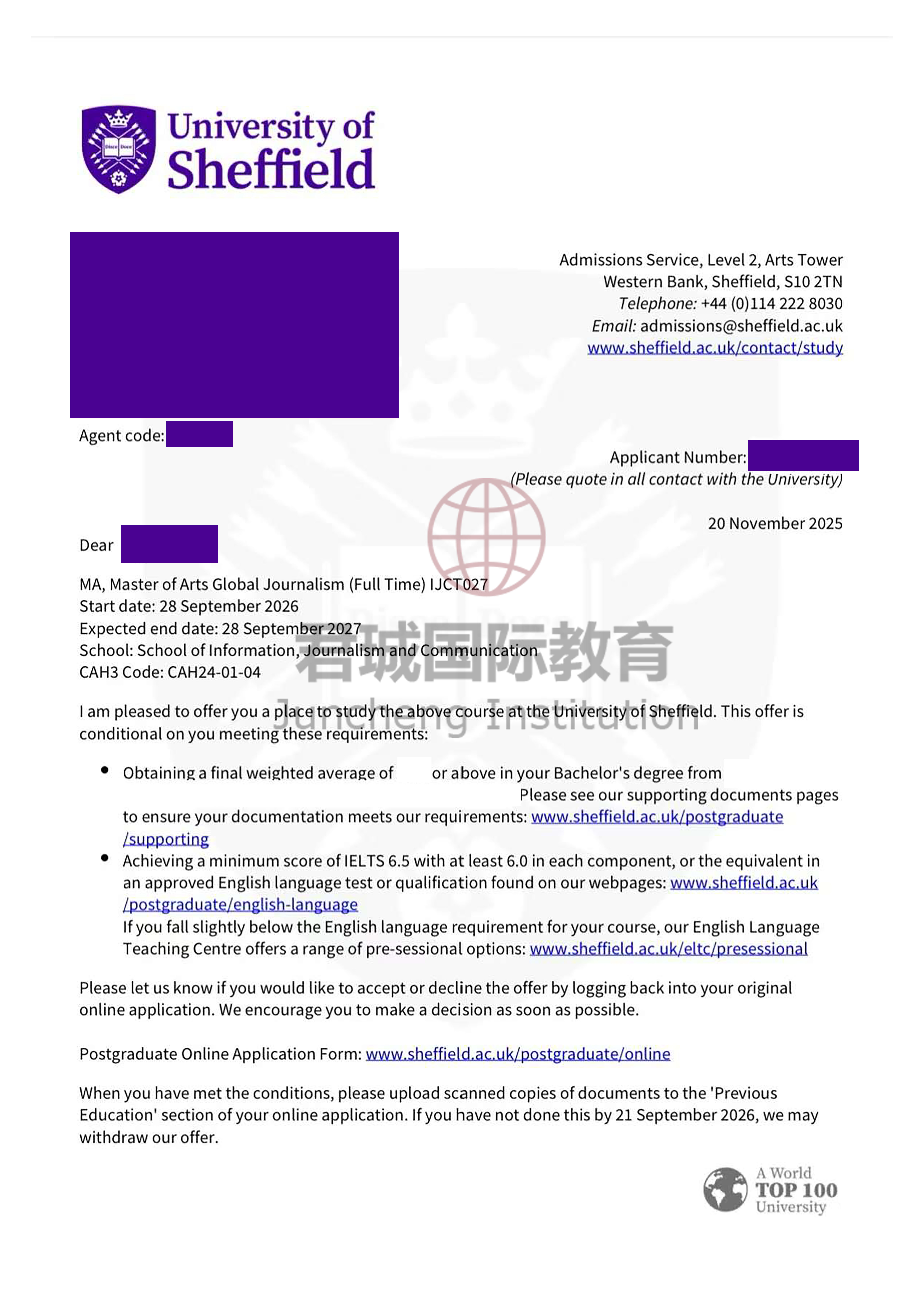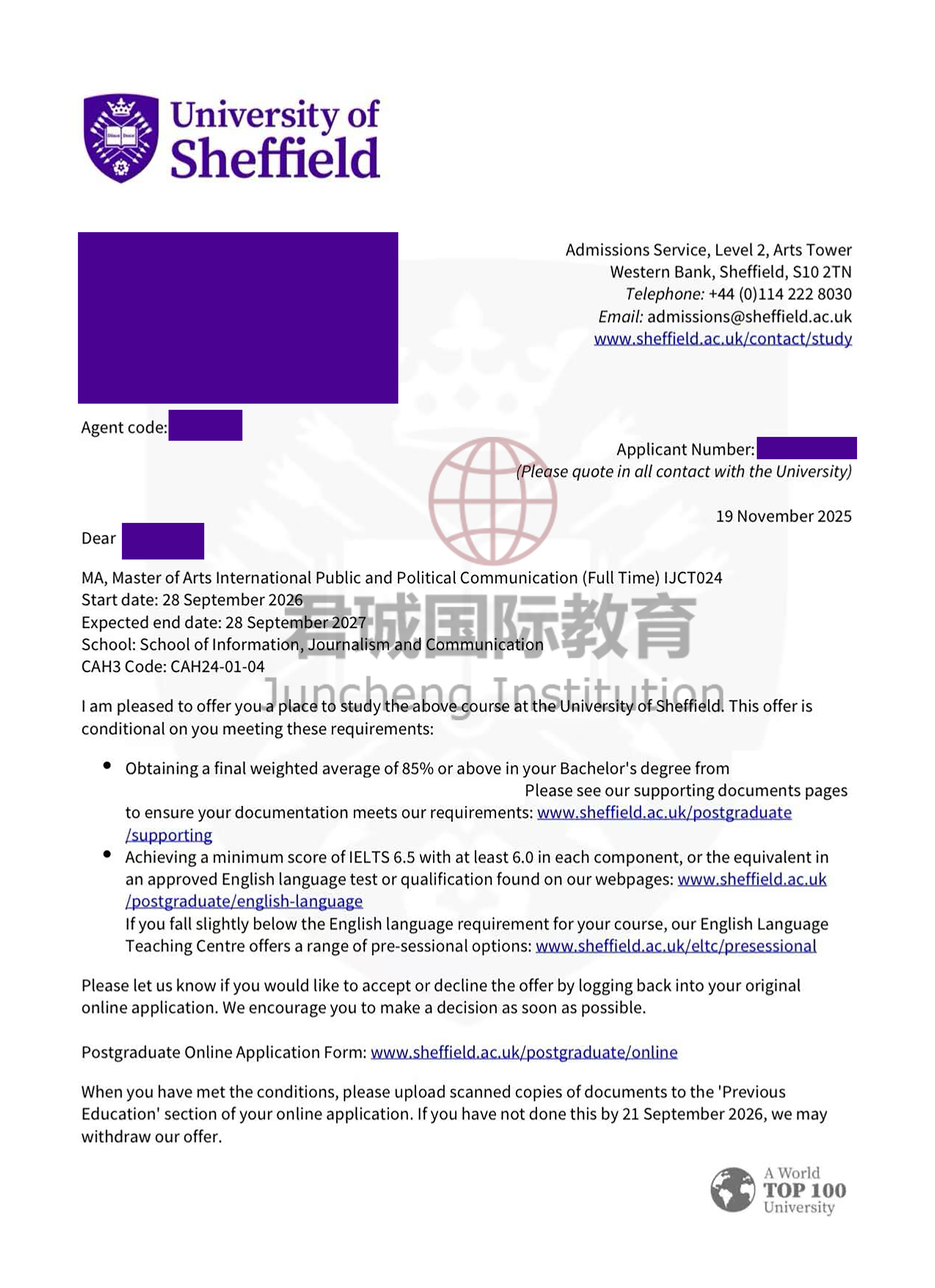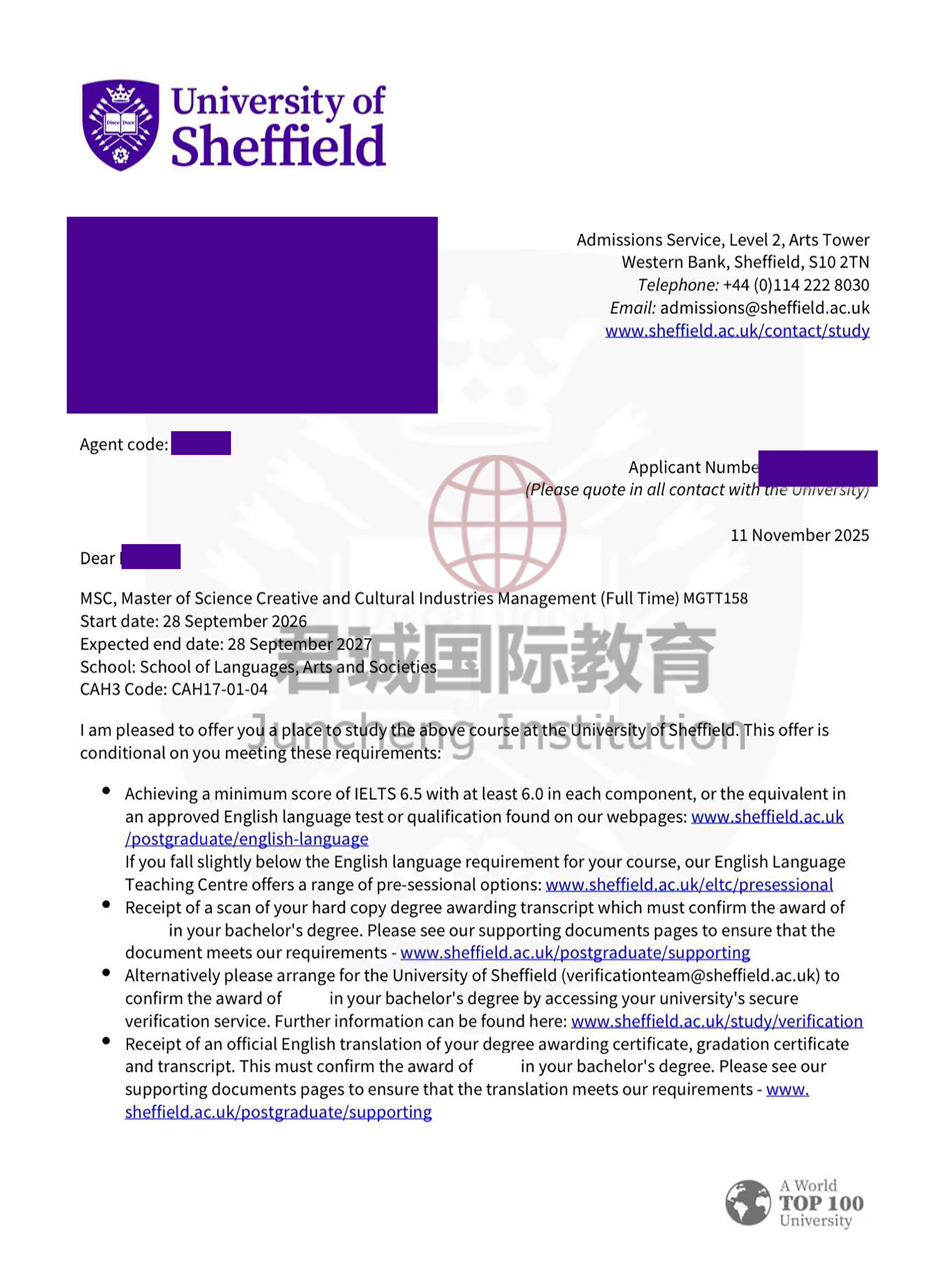 录取Offer:谢菲尔德大学 The University of Sheffield
