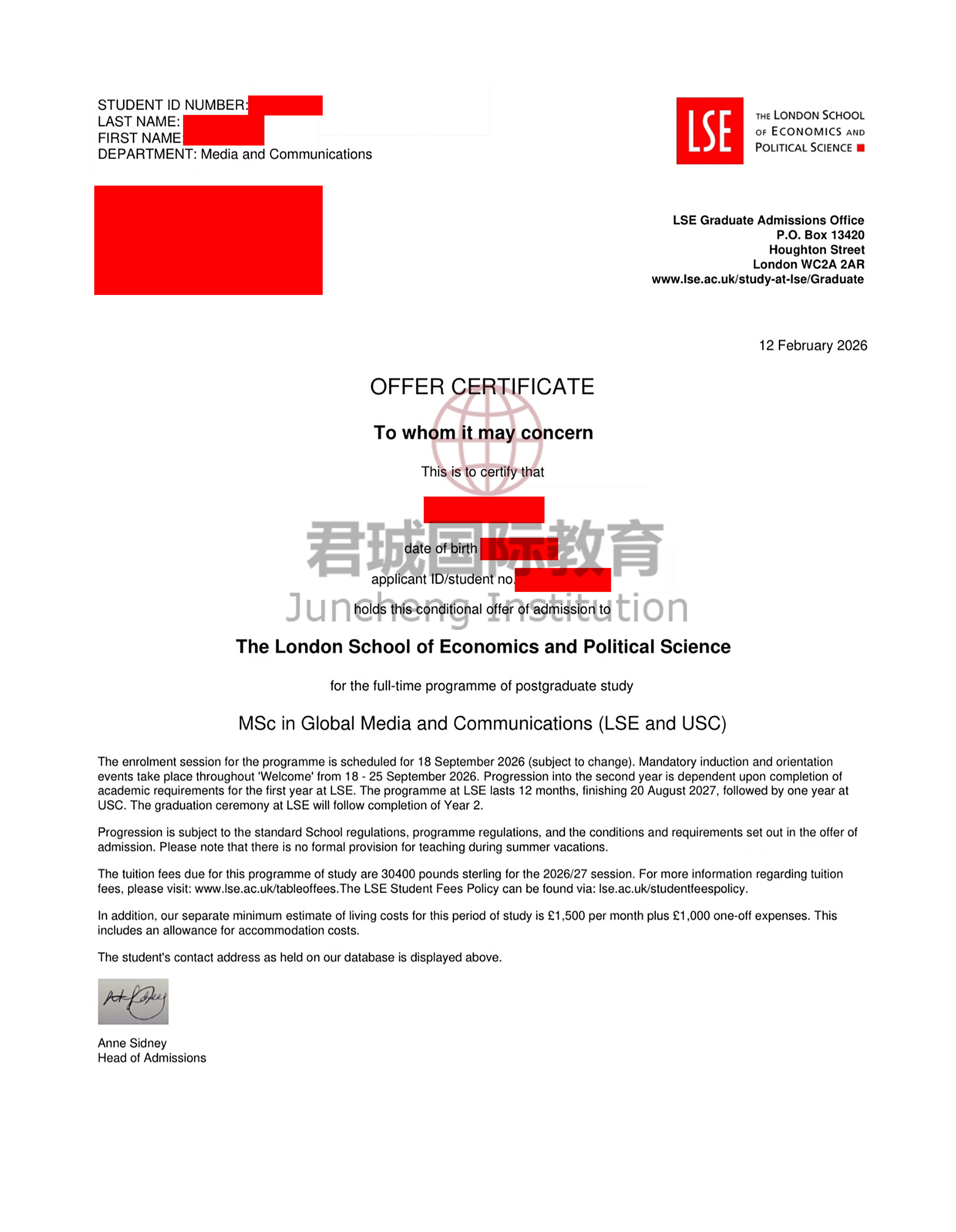 录取Offer:伦敦政经 The London School of Economics and Political Science