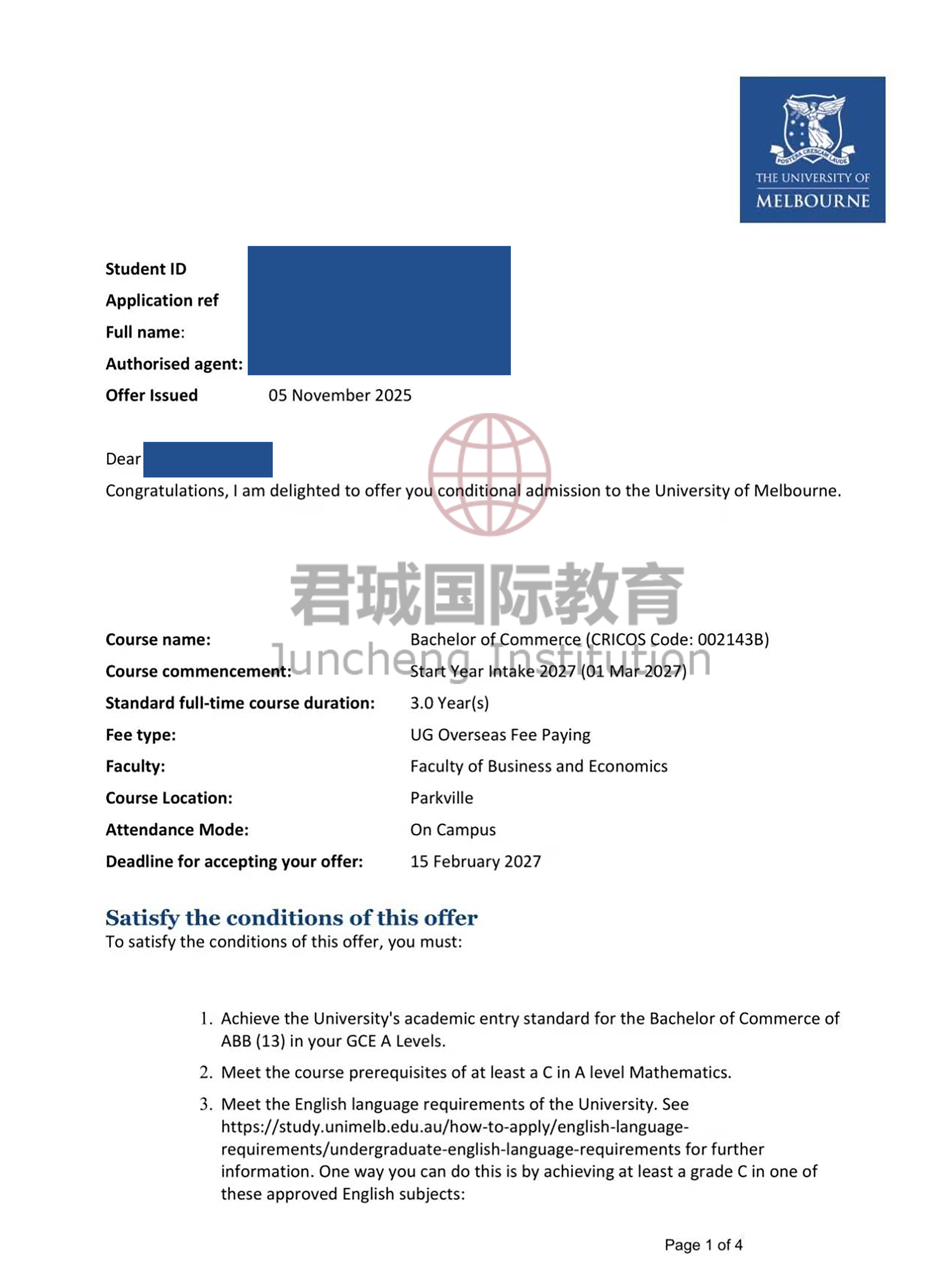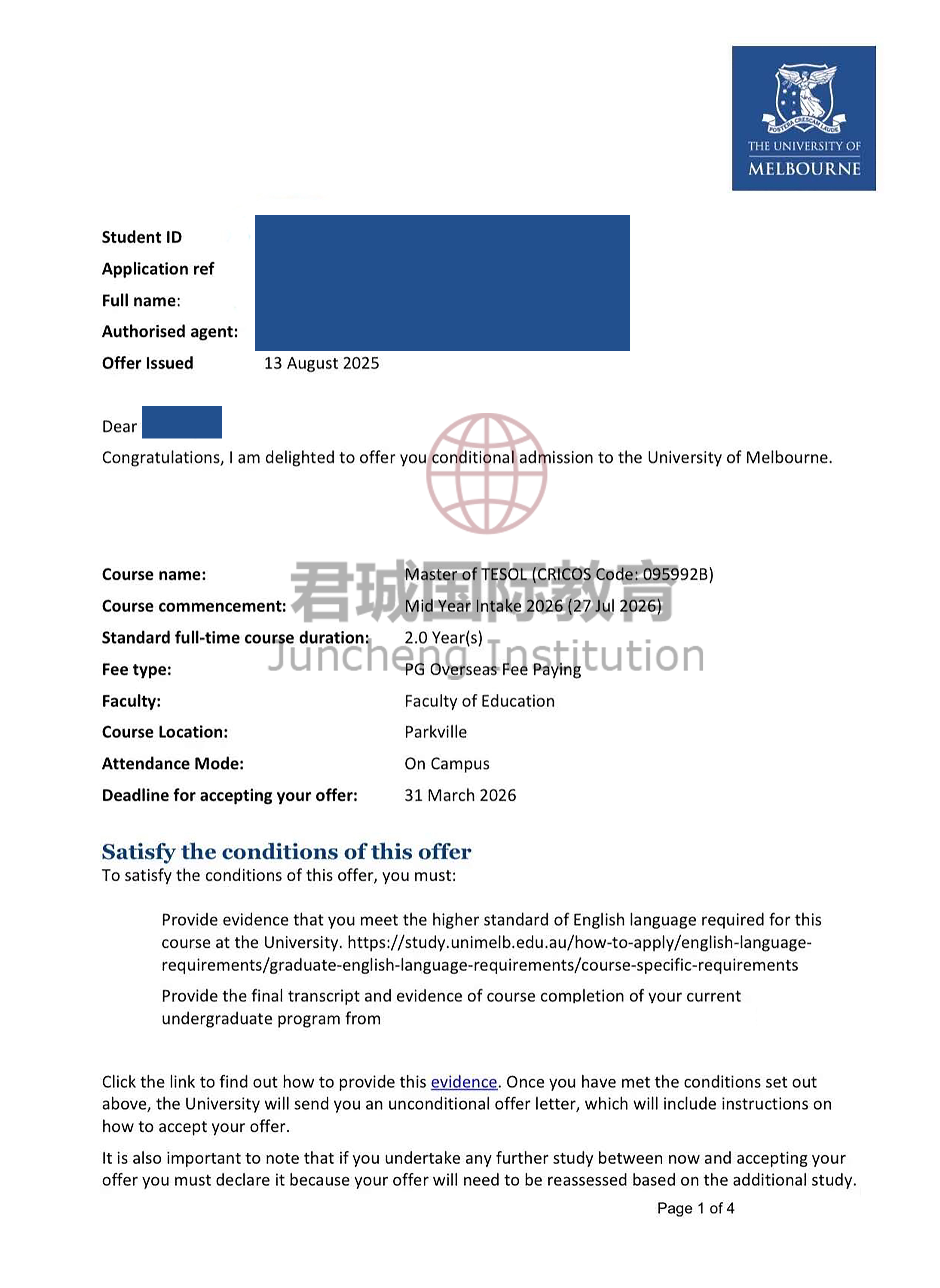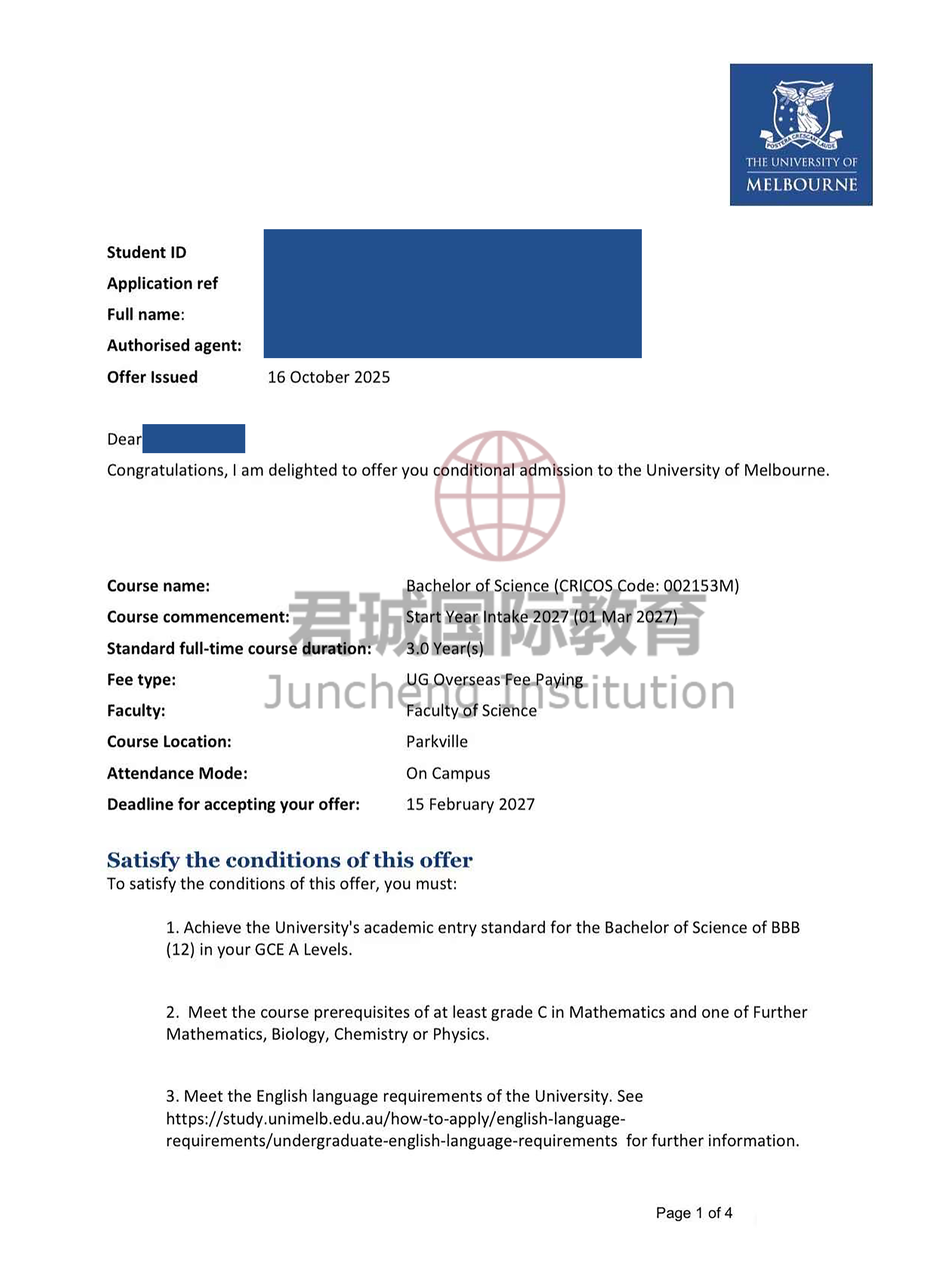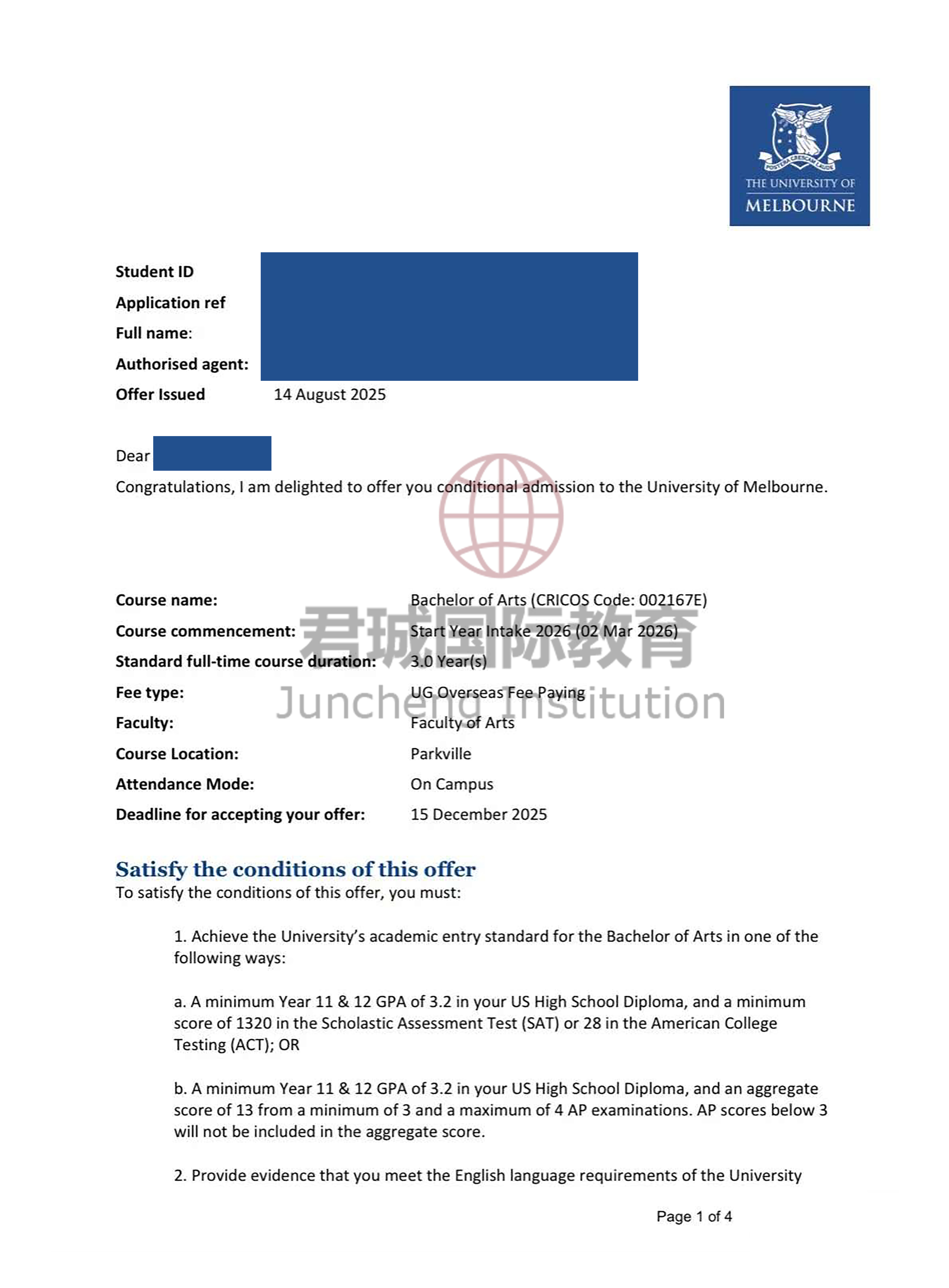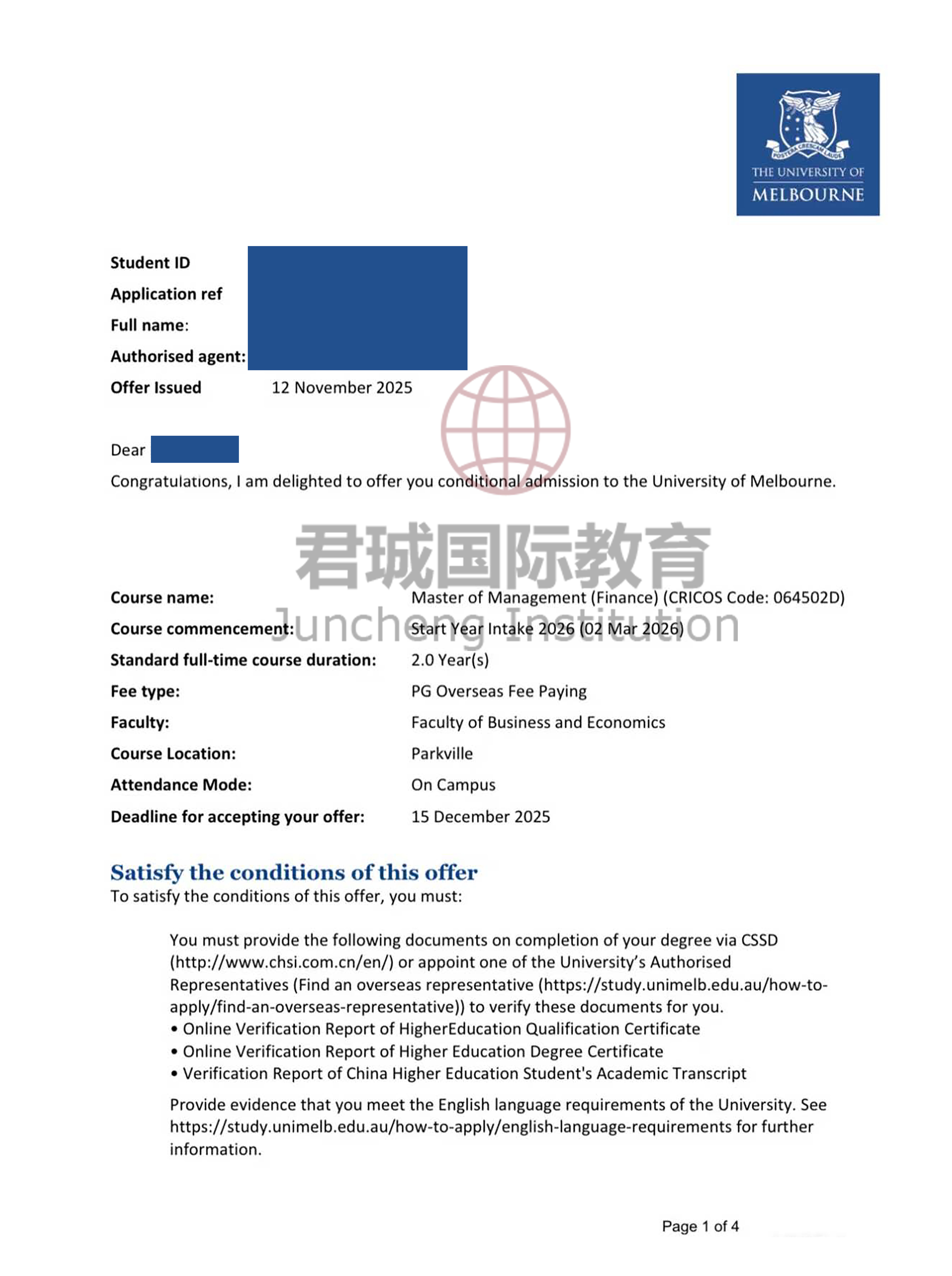 录取Offer:墨尔本大学 University of Melbourne