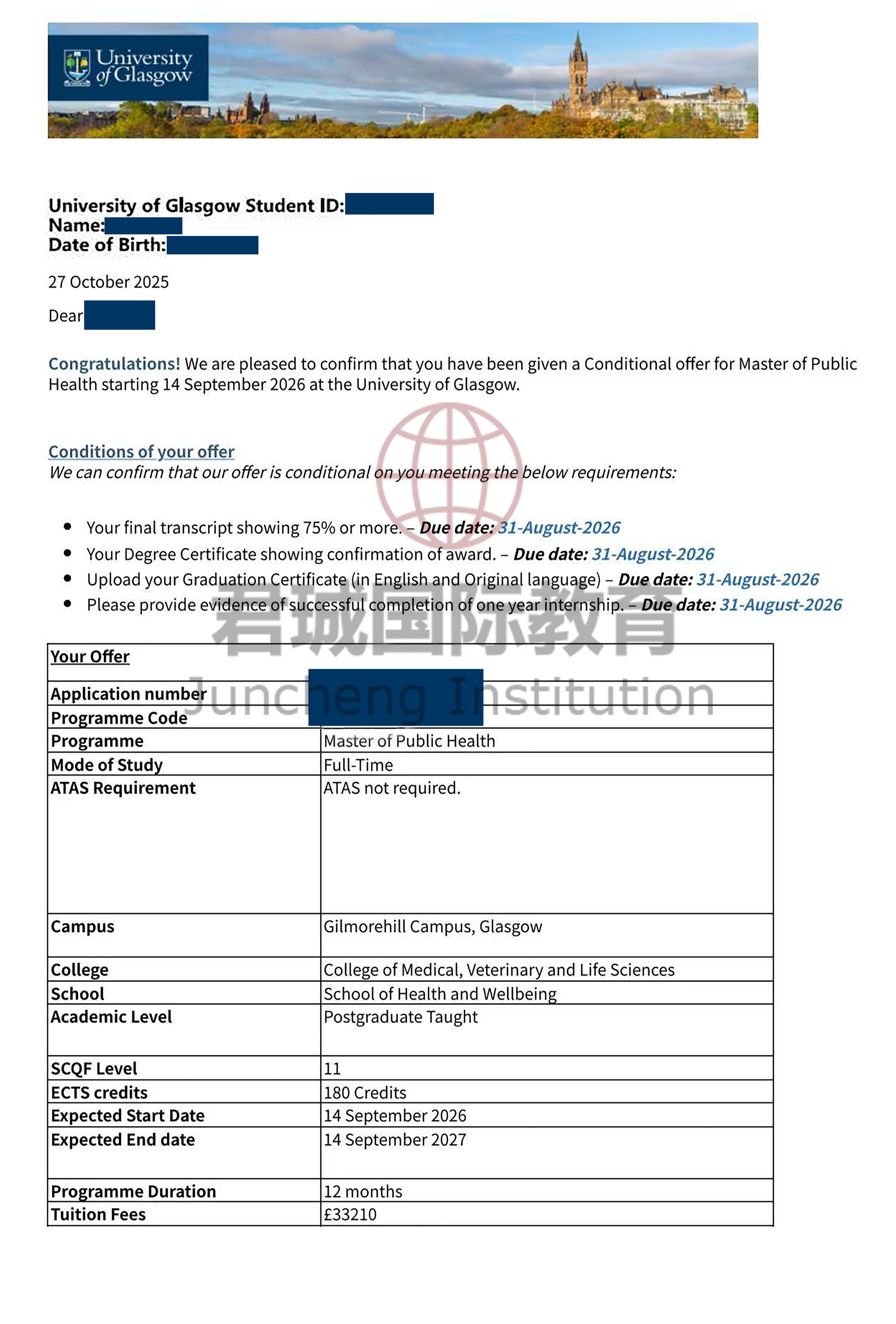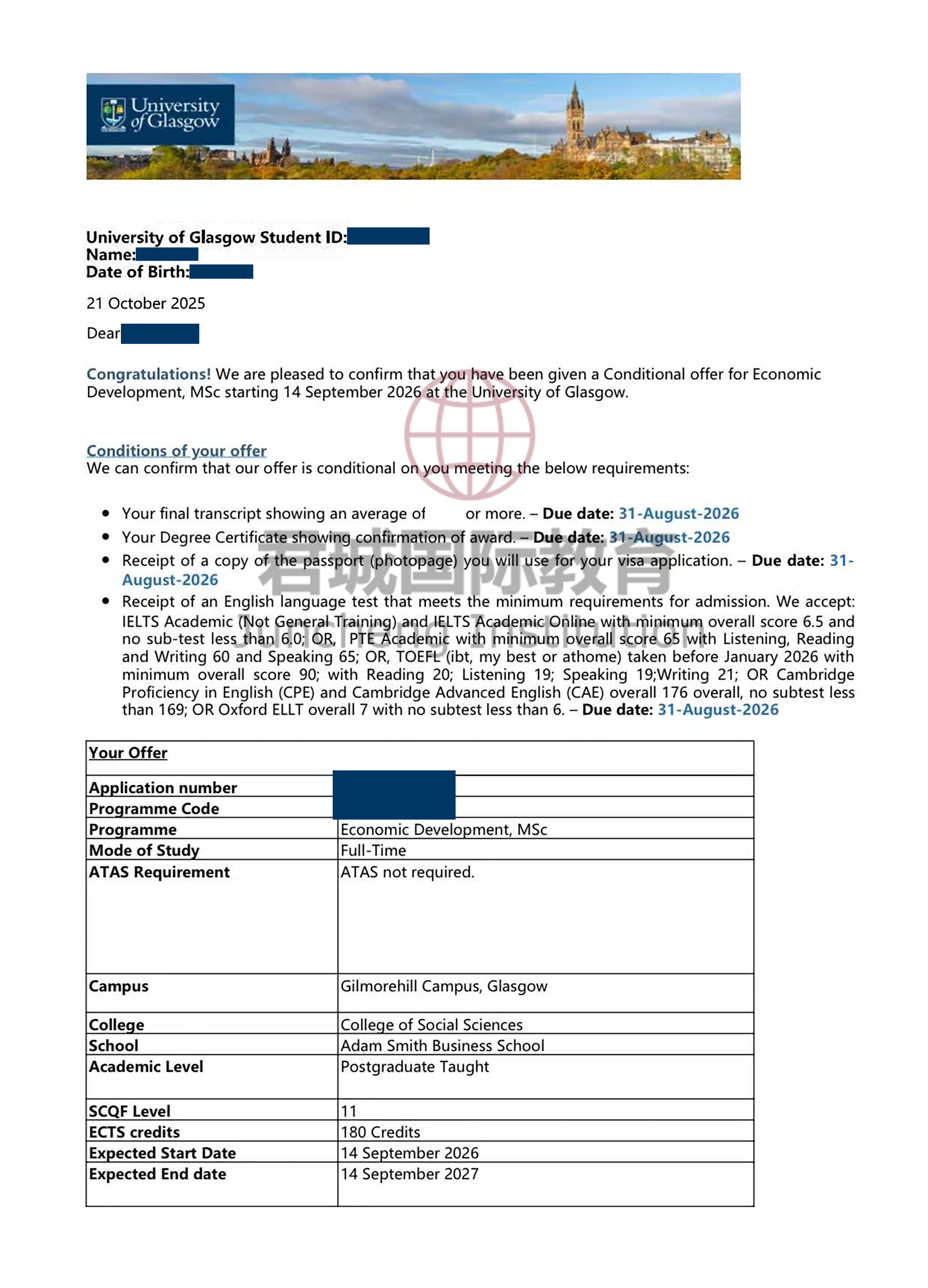 录取Offer:格拉斯哥大学 University of Glasgow