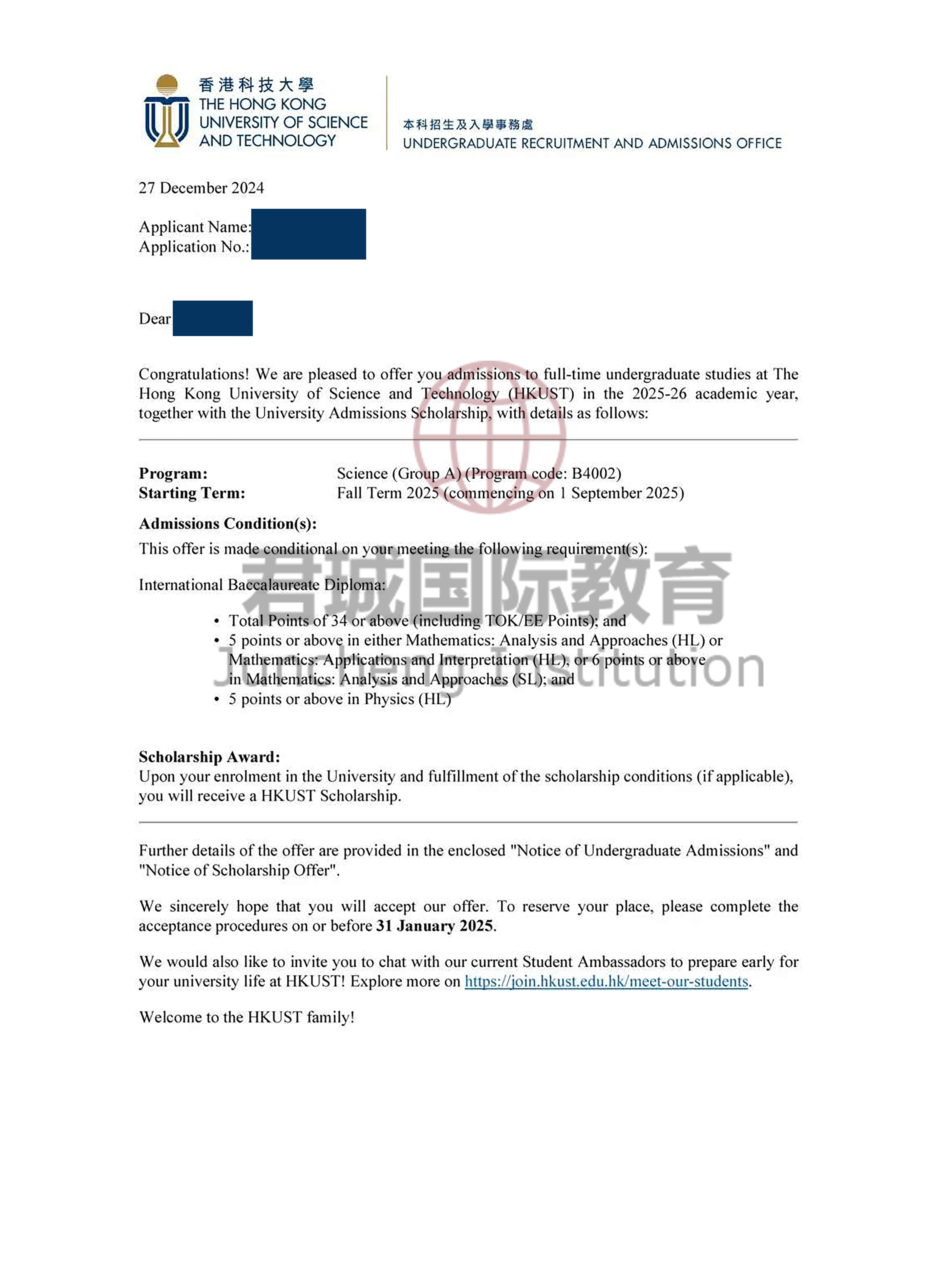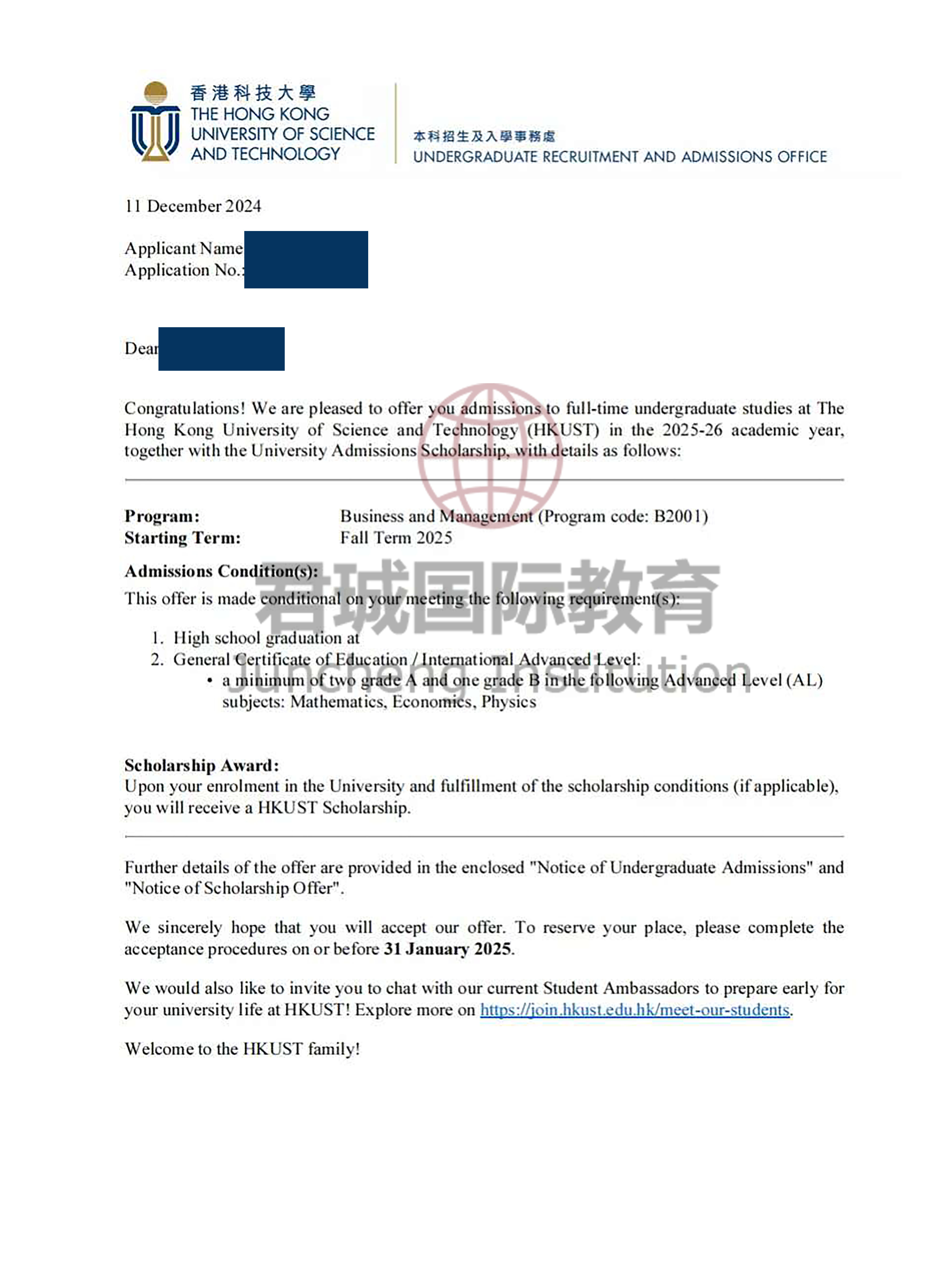 录取Offer:香港科技大学 Hong Kong University of Science and Technology