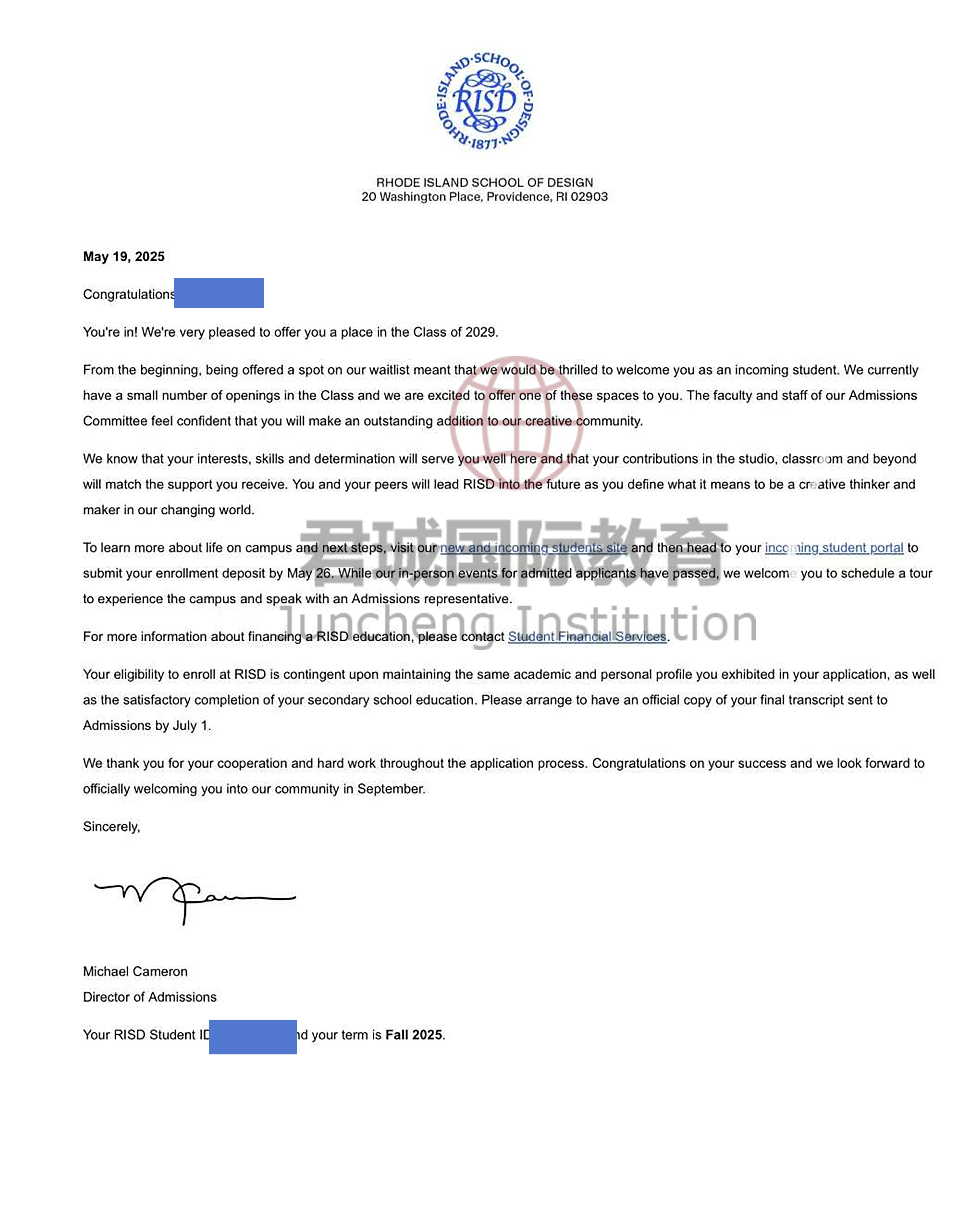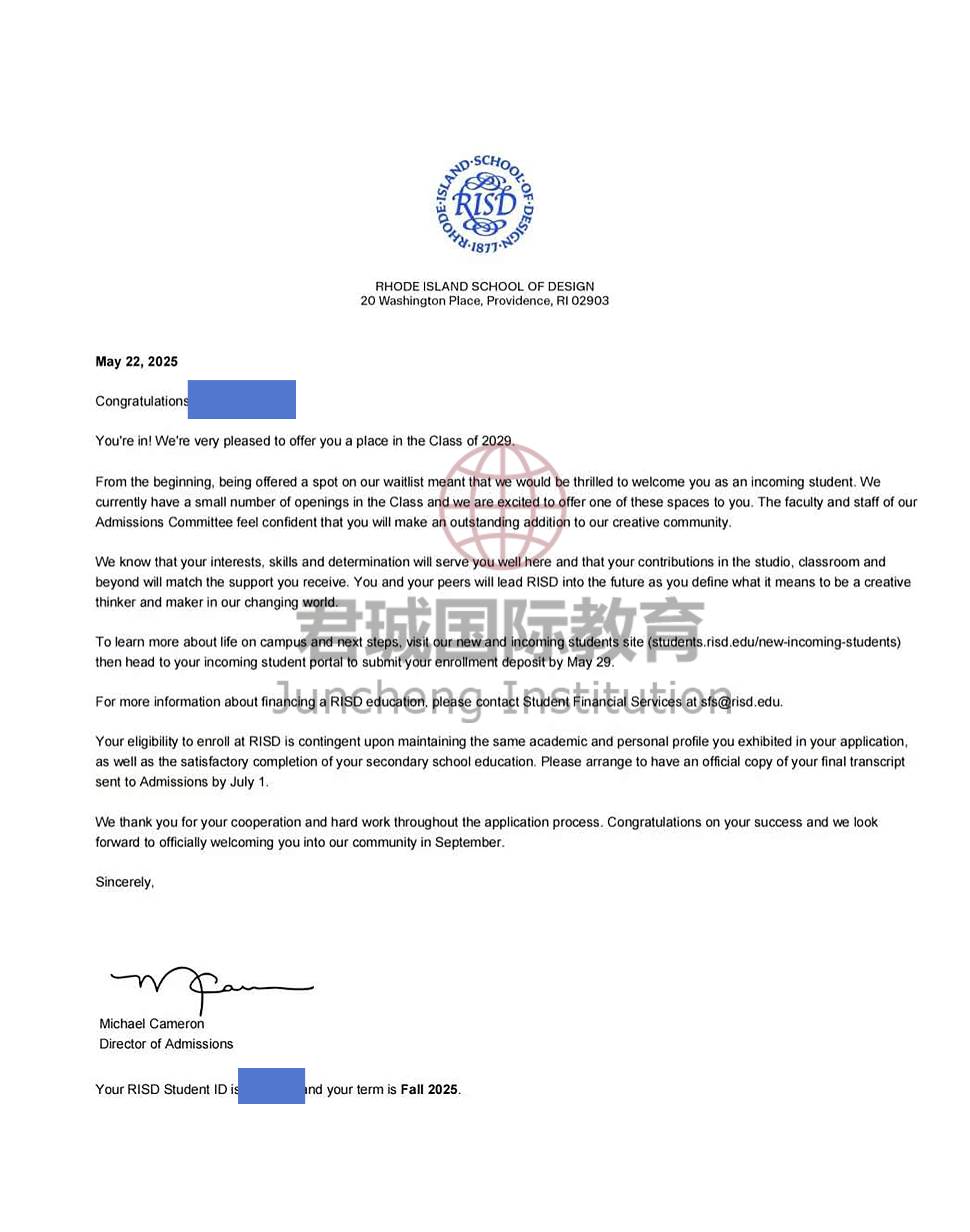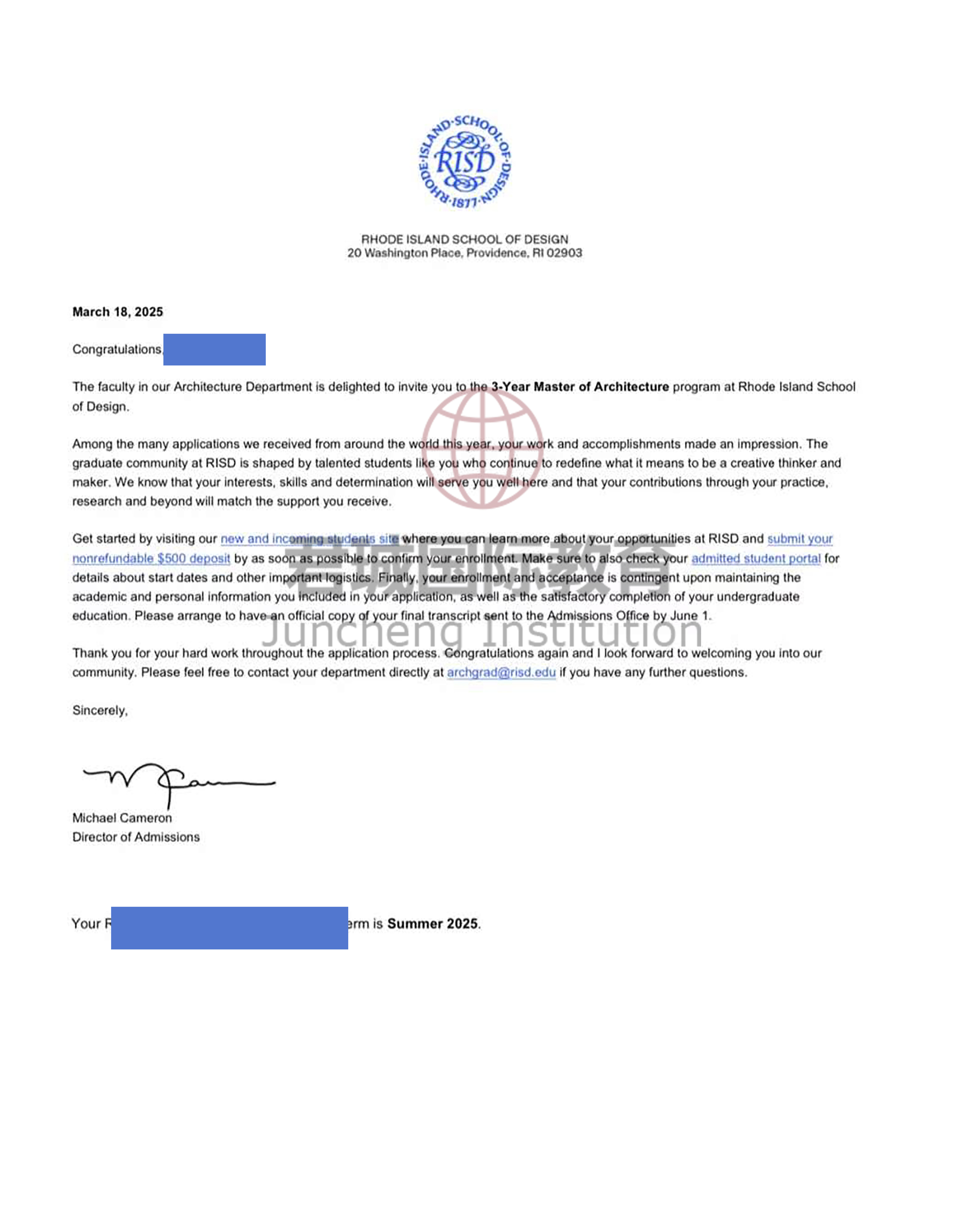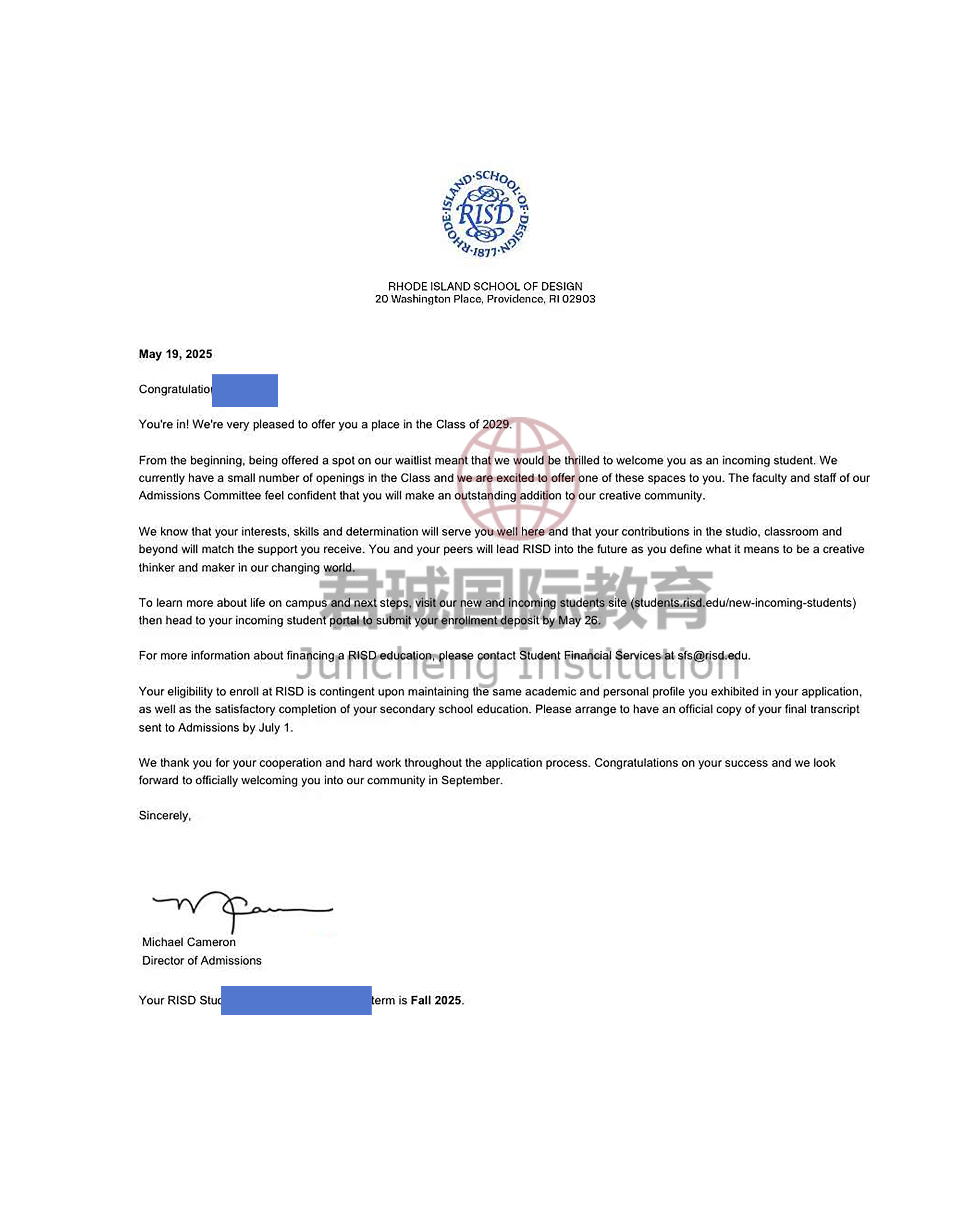录取Offer:罗德岛设计学院 Rhode Island School of Design