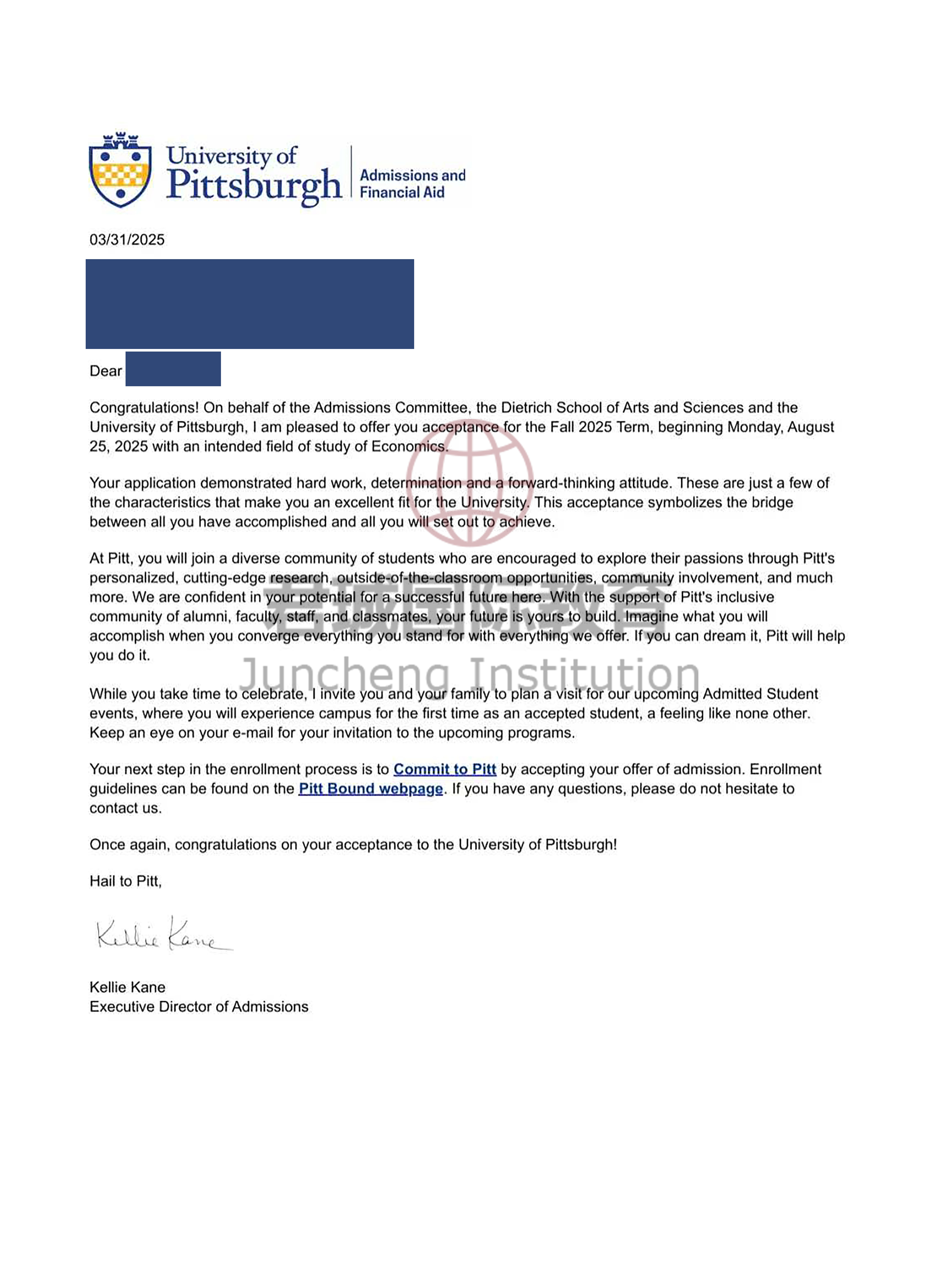 录取Offer:匹兹堡大学 University of Pittsburgh