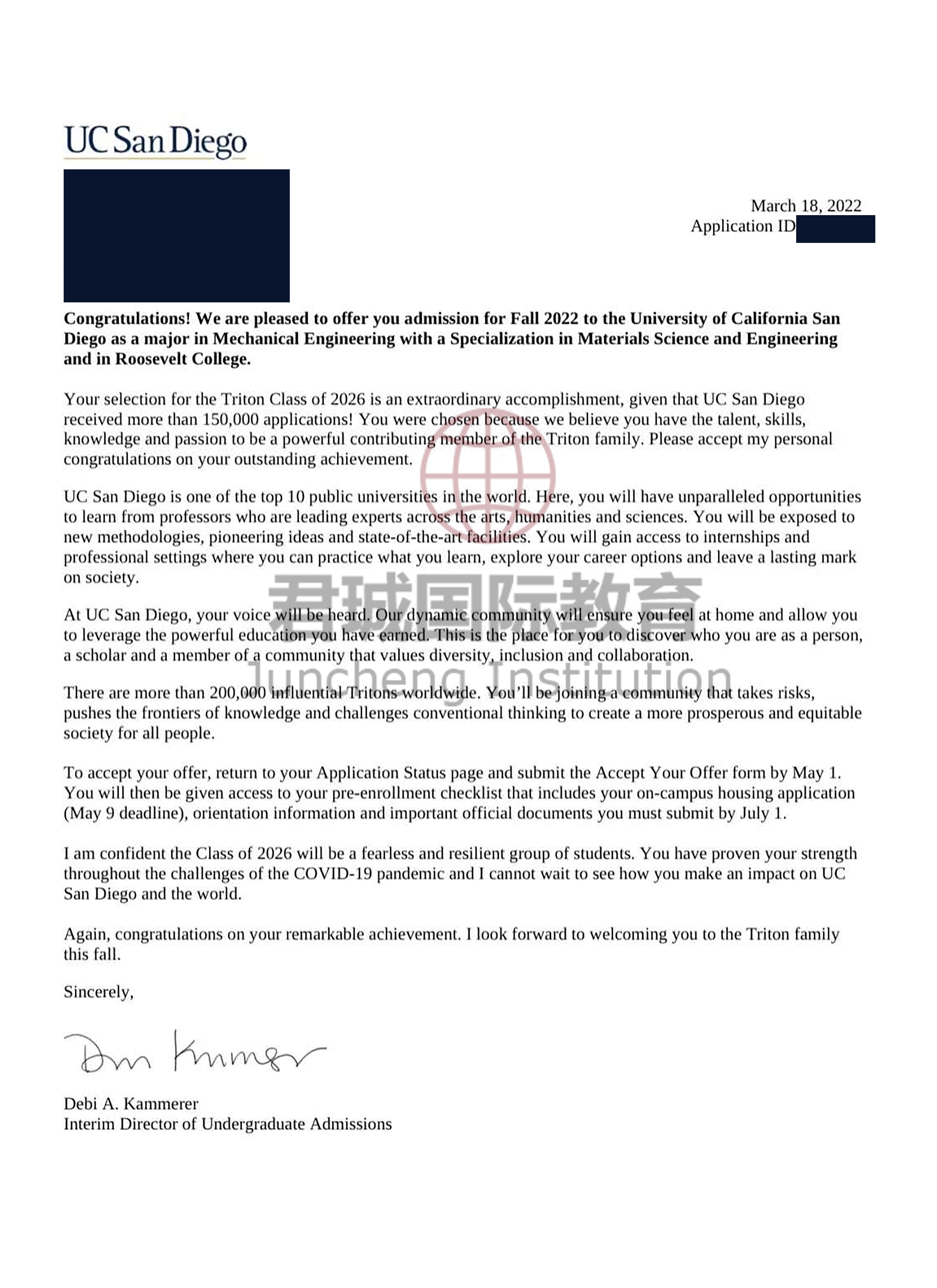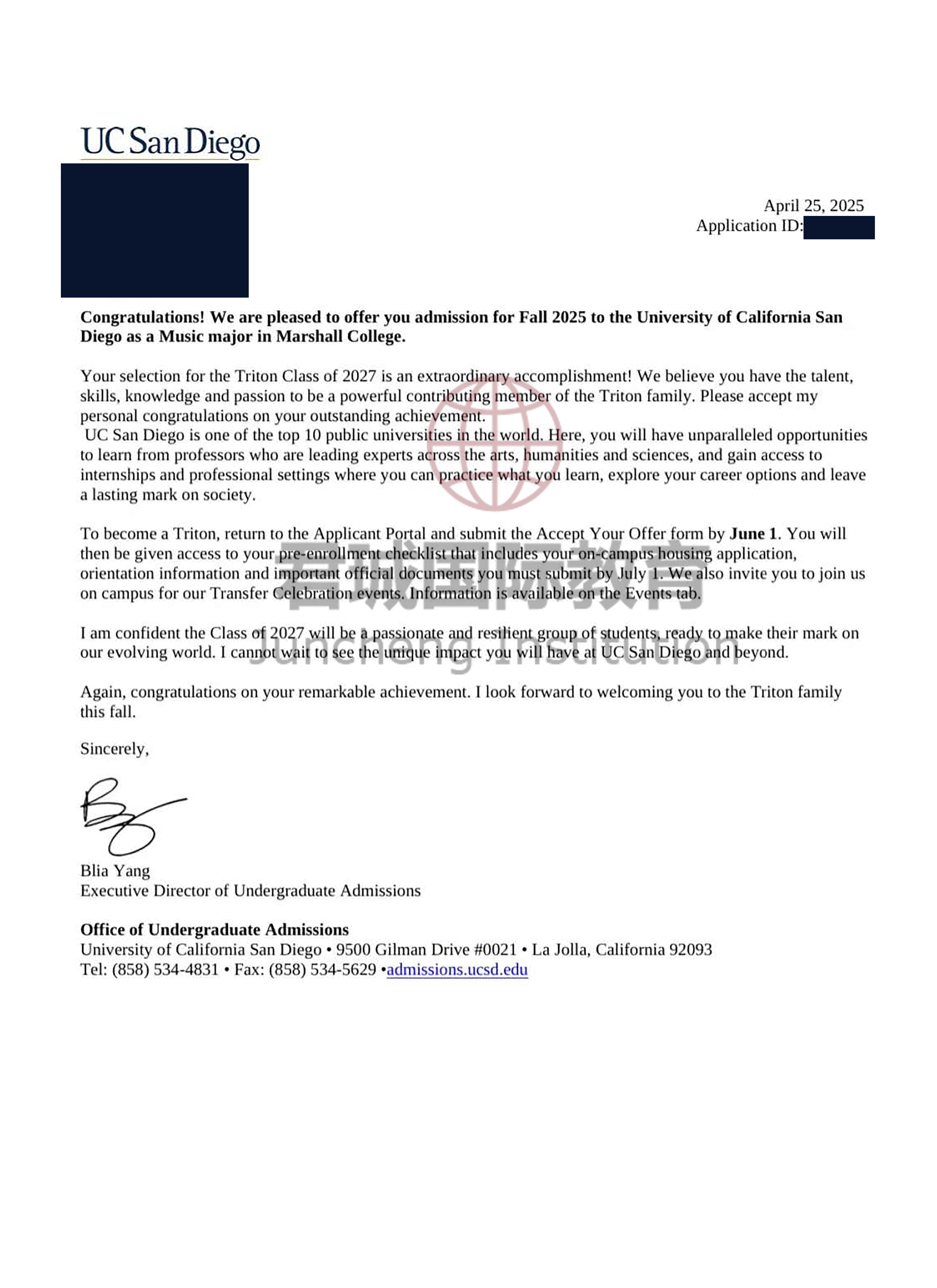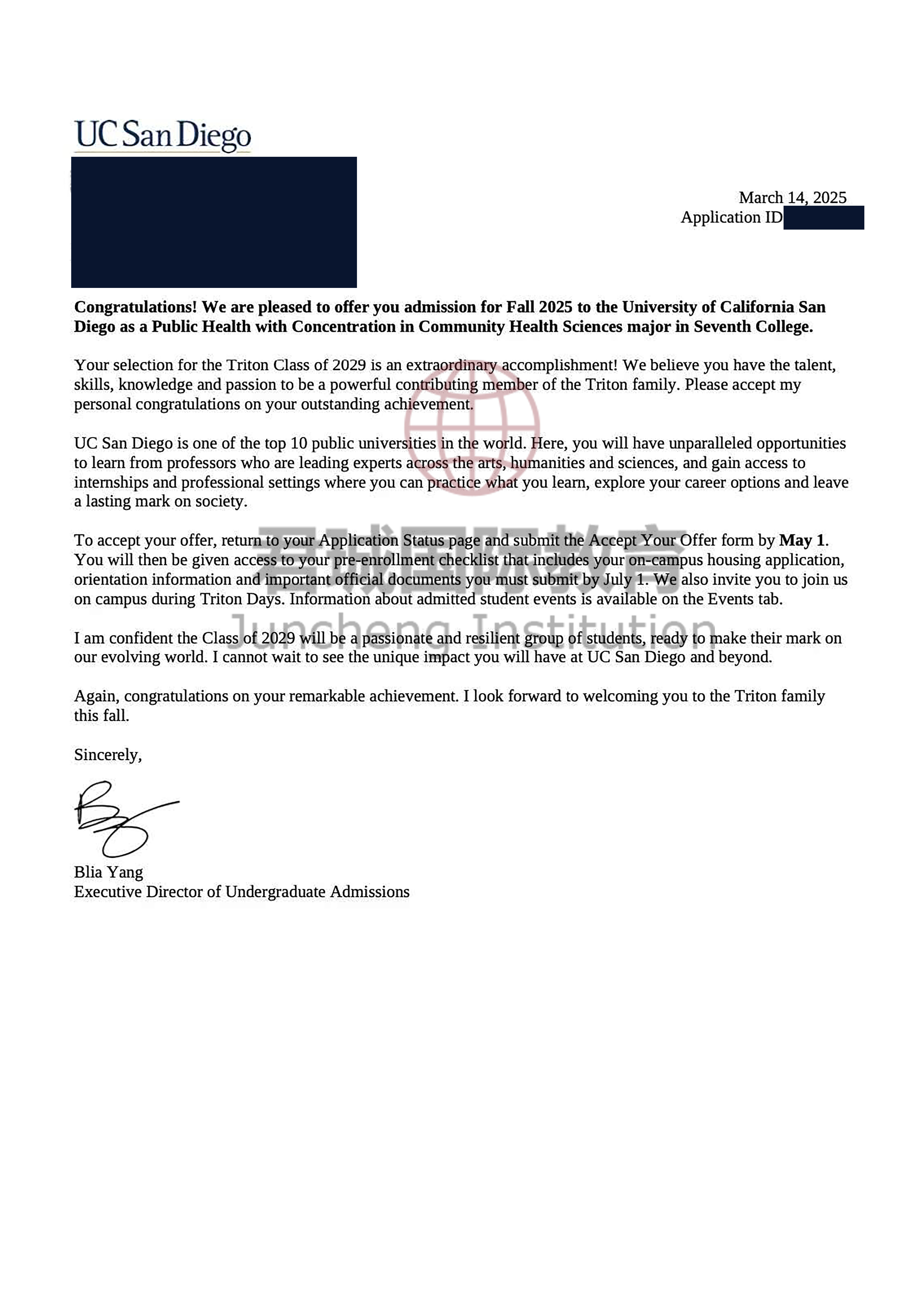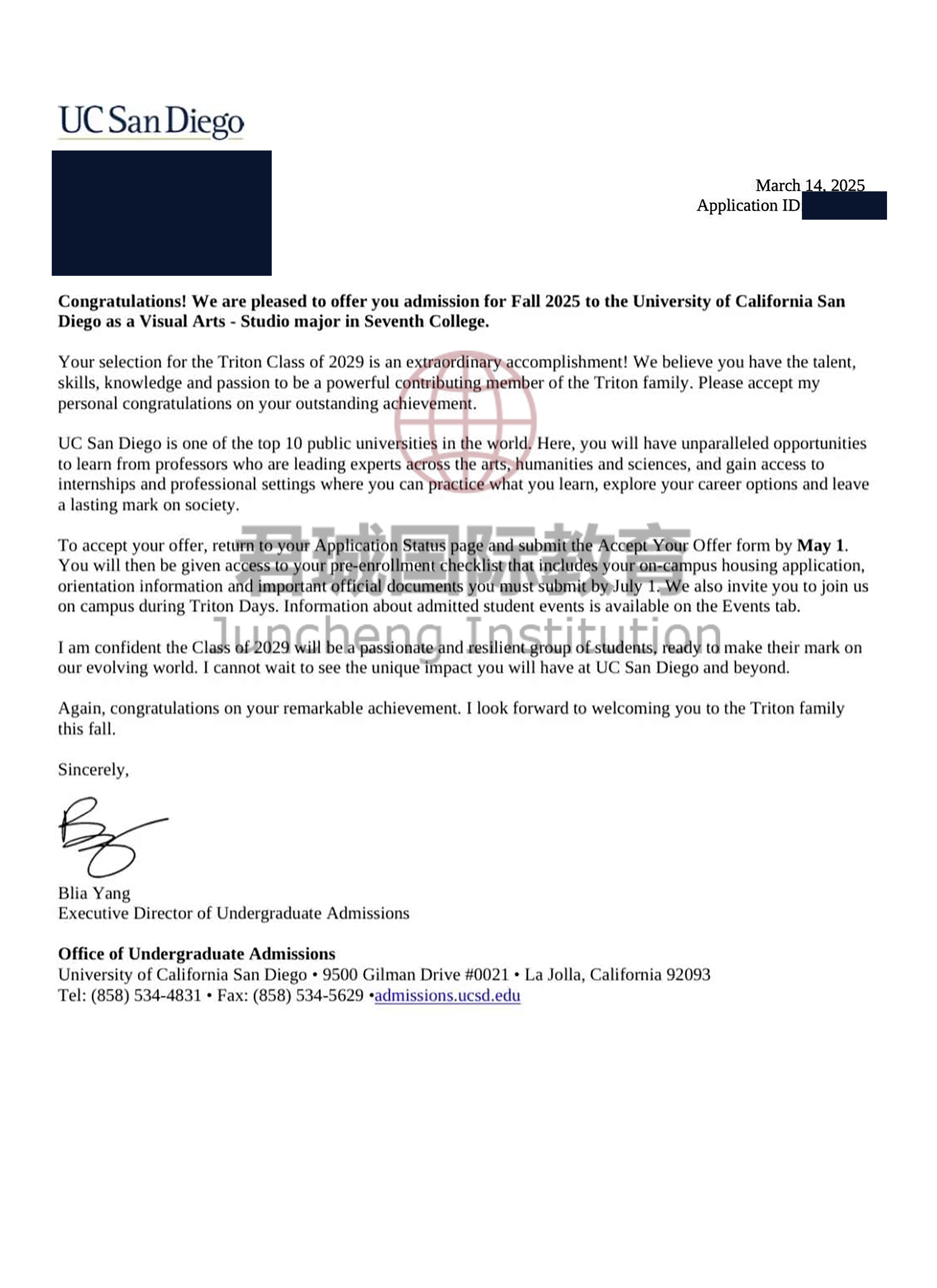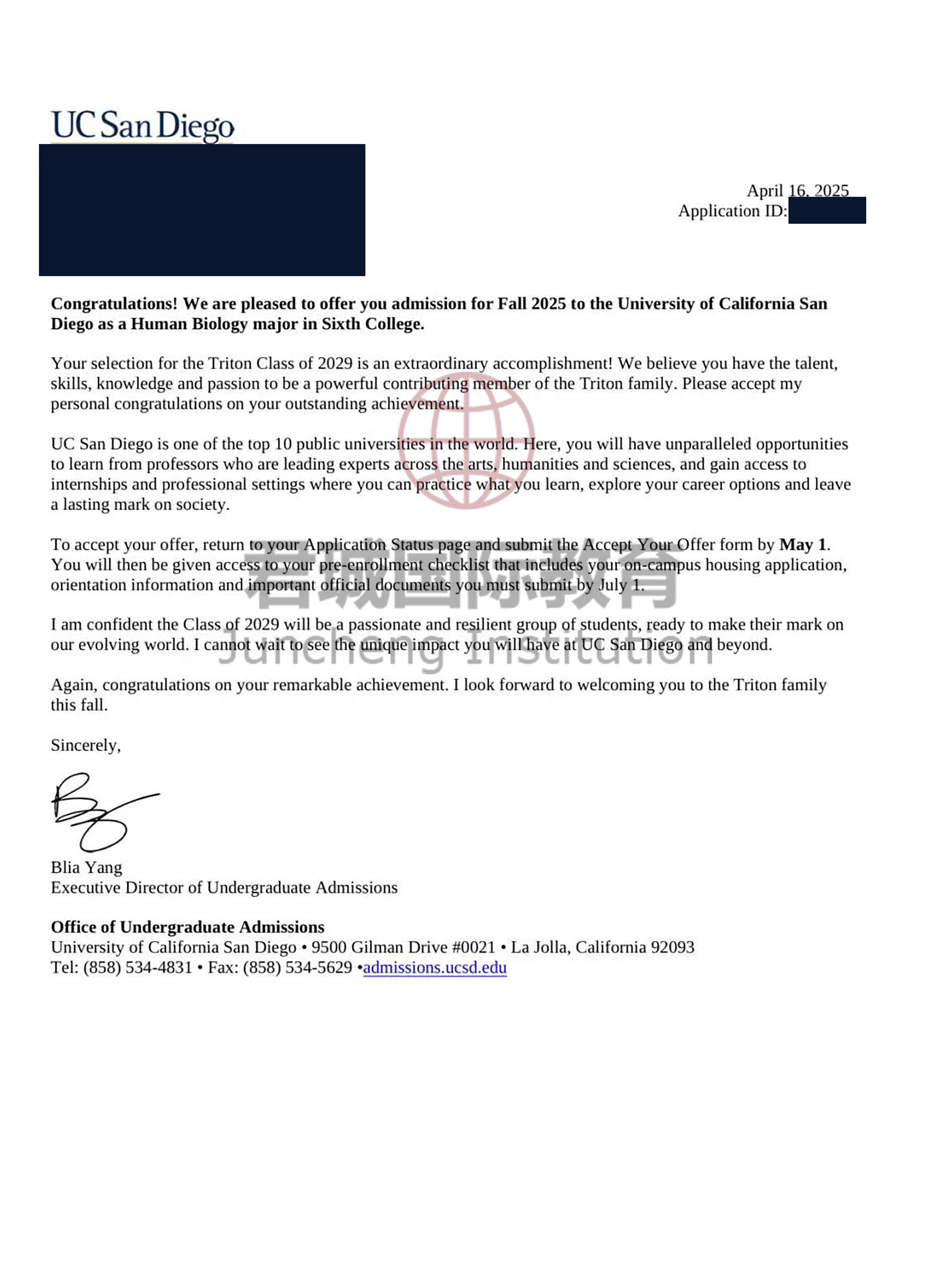 录取Offer:加州大学圣地亚哥分校 University of California, San Diego