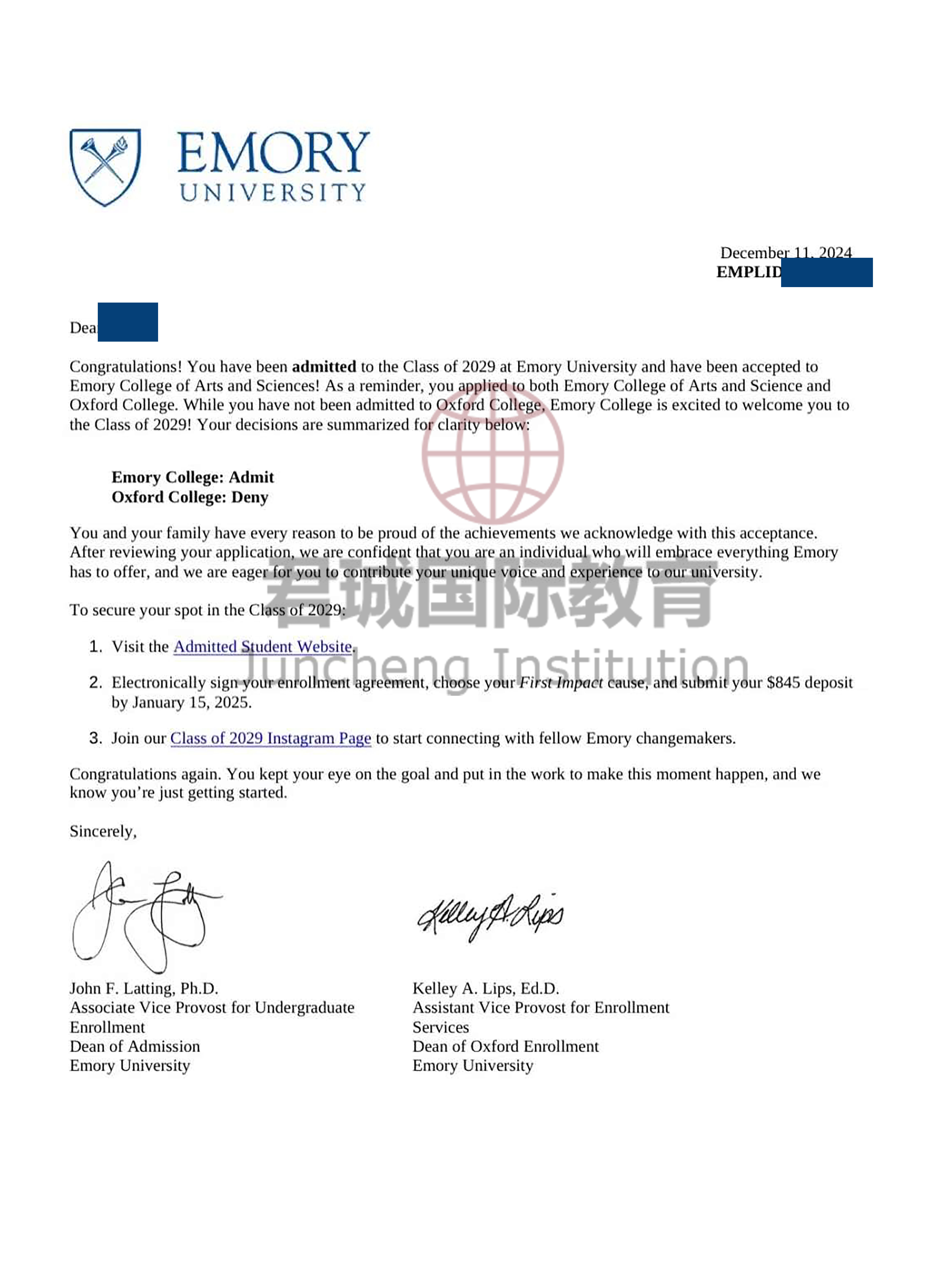 录取Offer:美国埃默里大学 Emory University