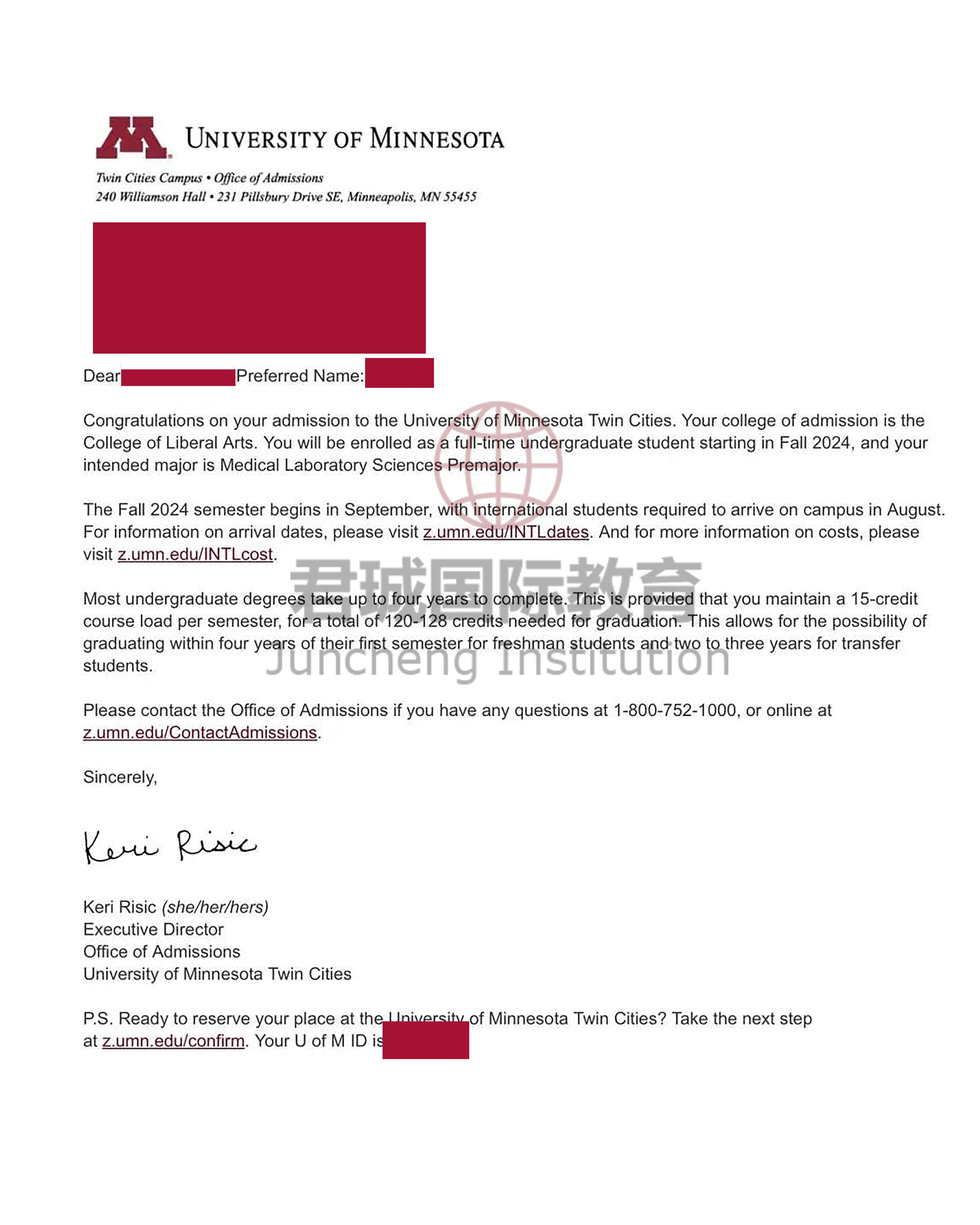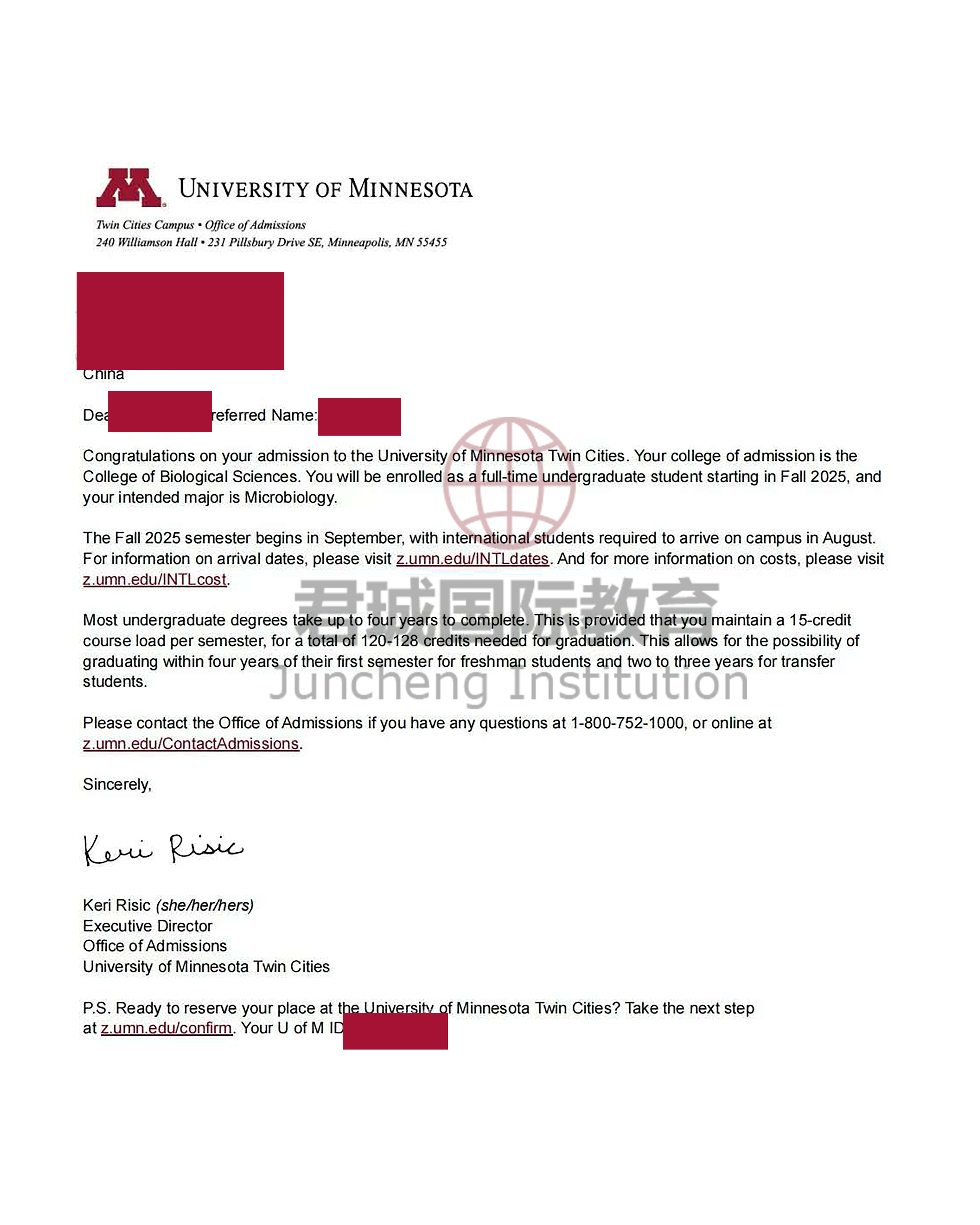 录取Offer:明尼苏达大学双城分校 University of Minnesota Twin Cities