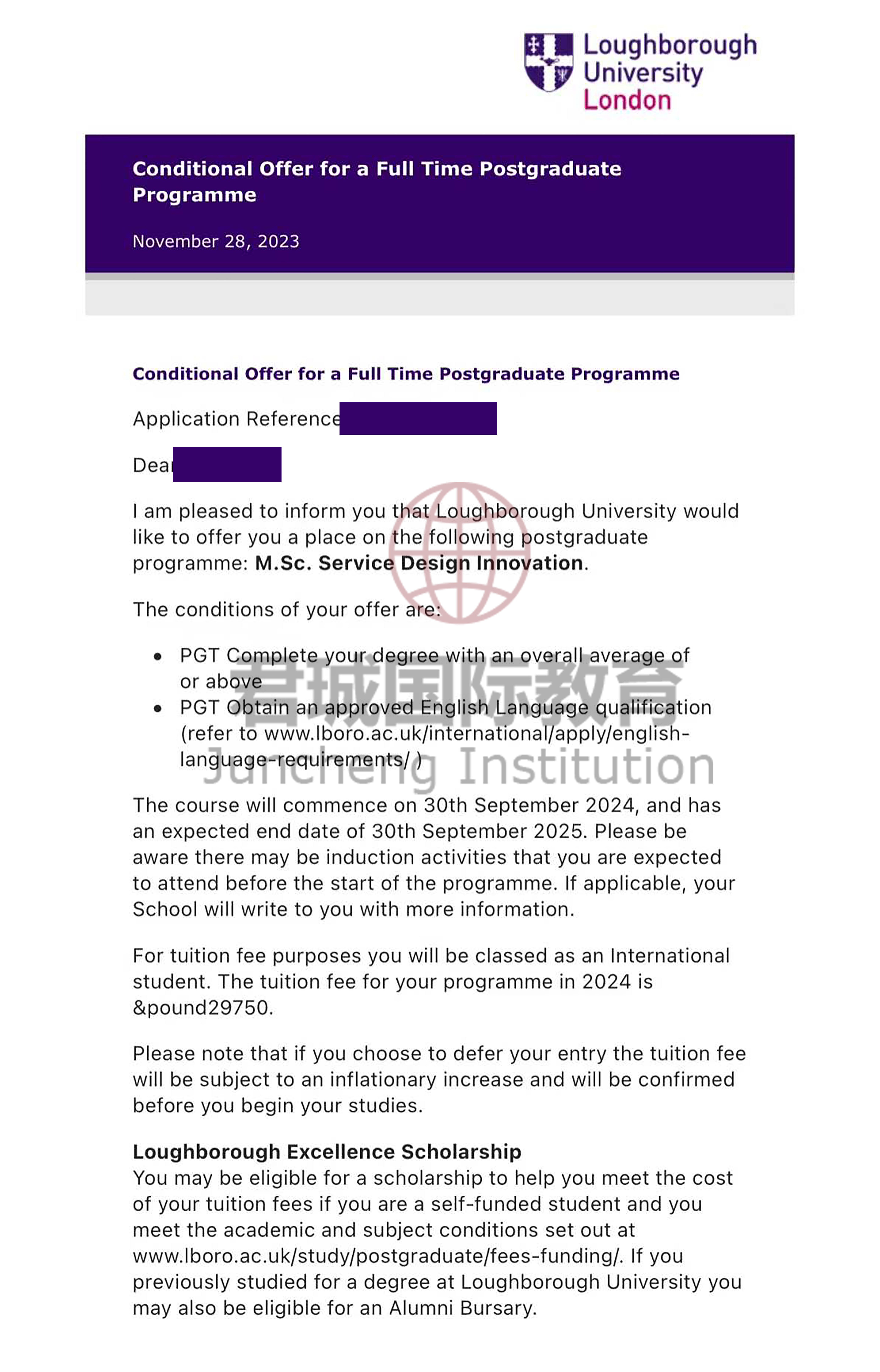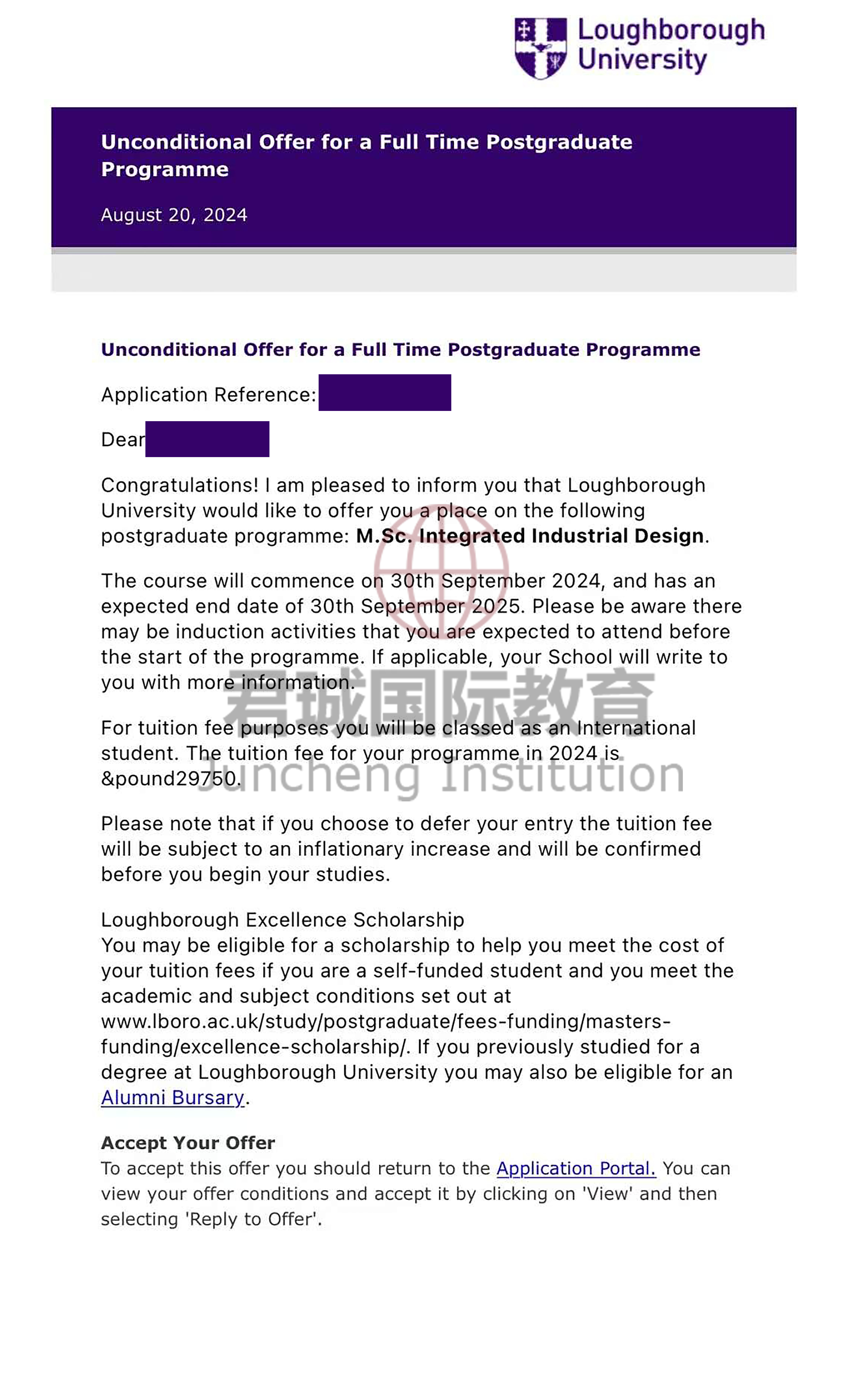 录取Offer:拉夫堡大学 Loughborough University