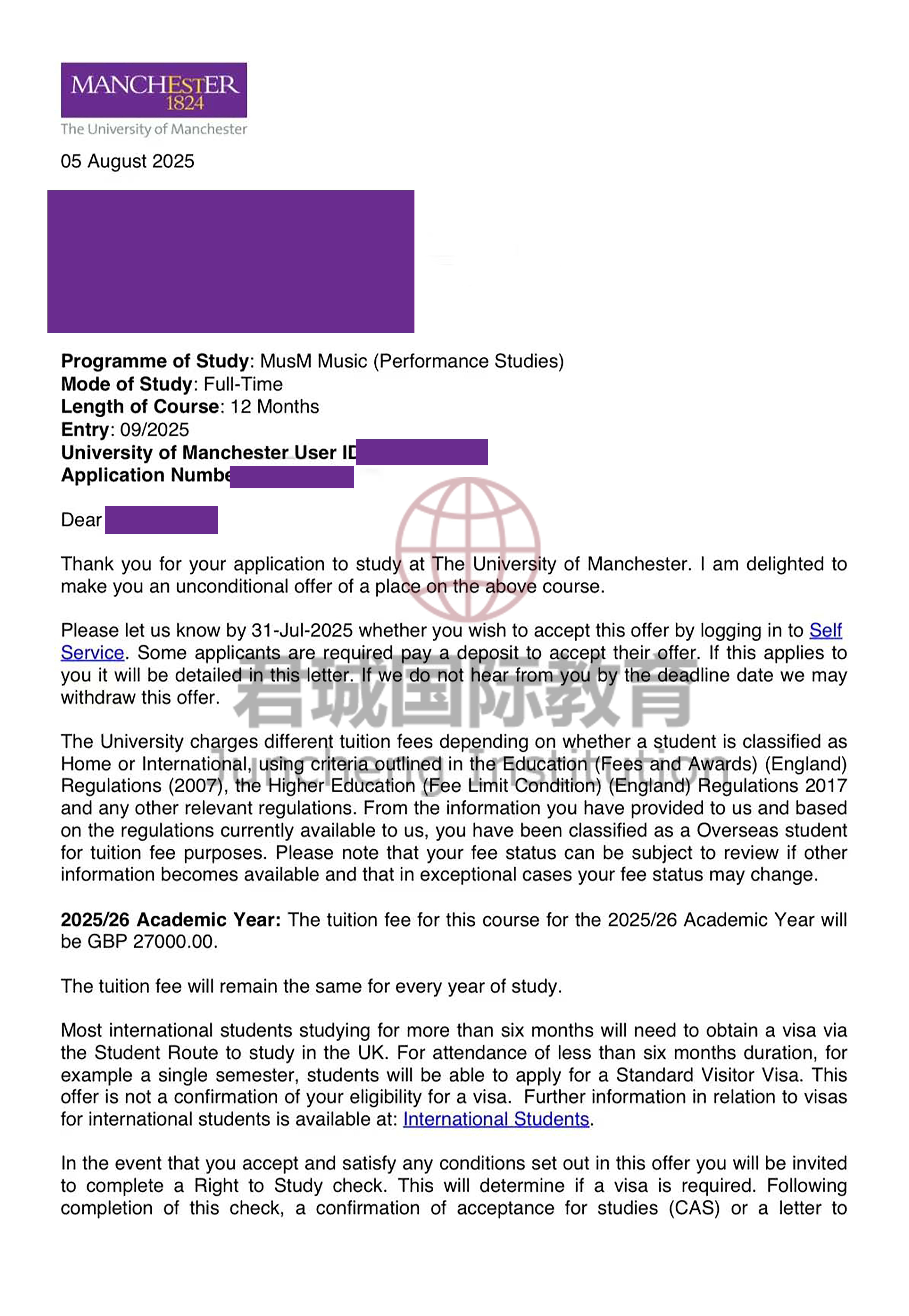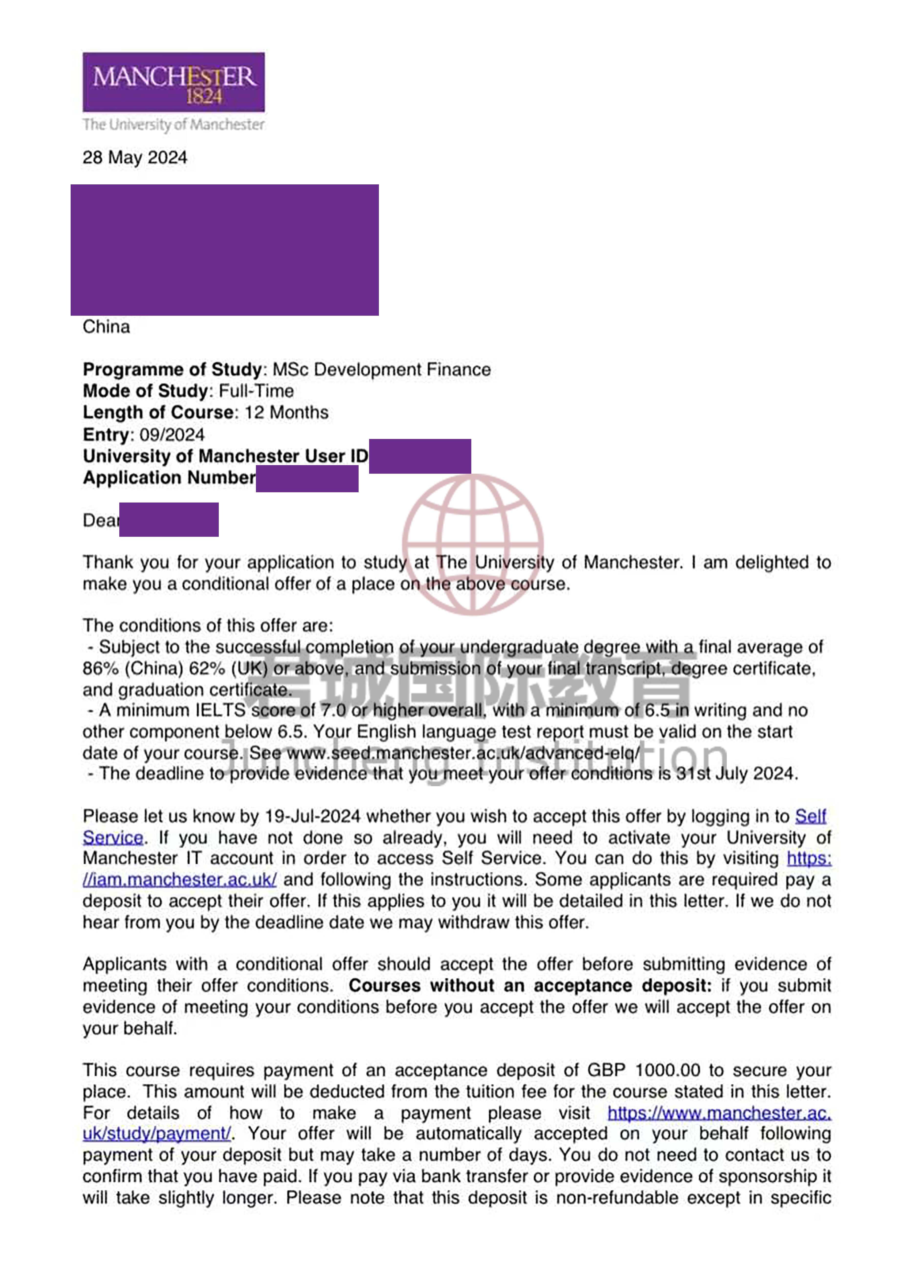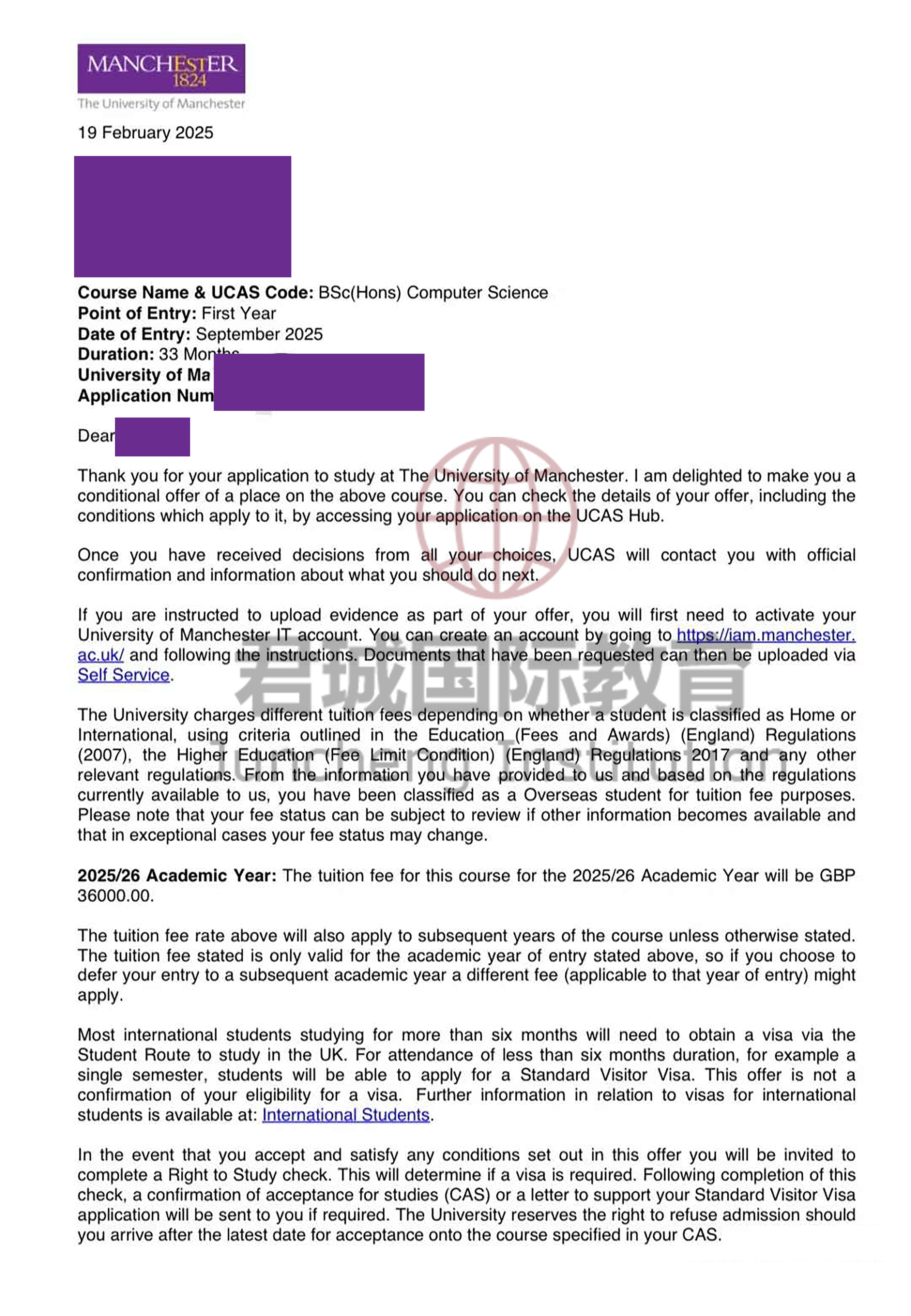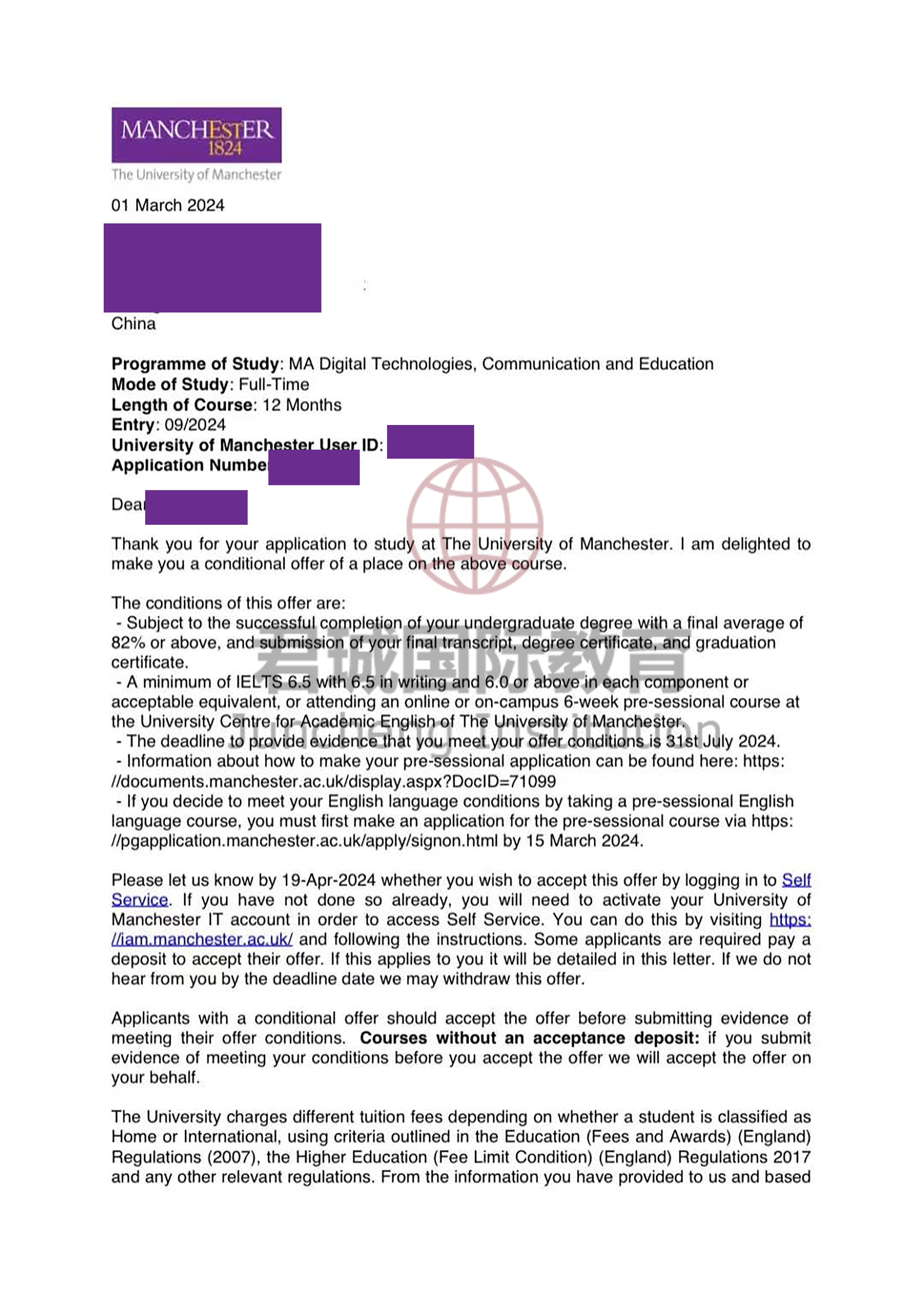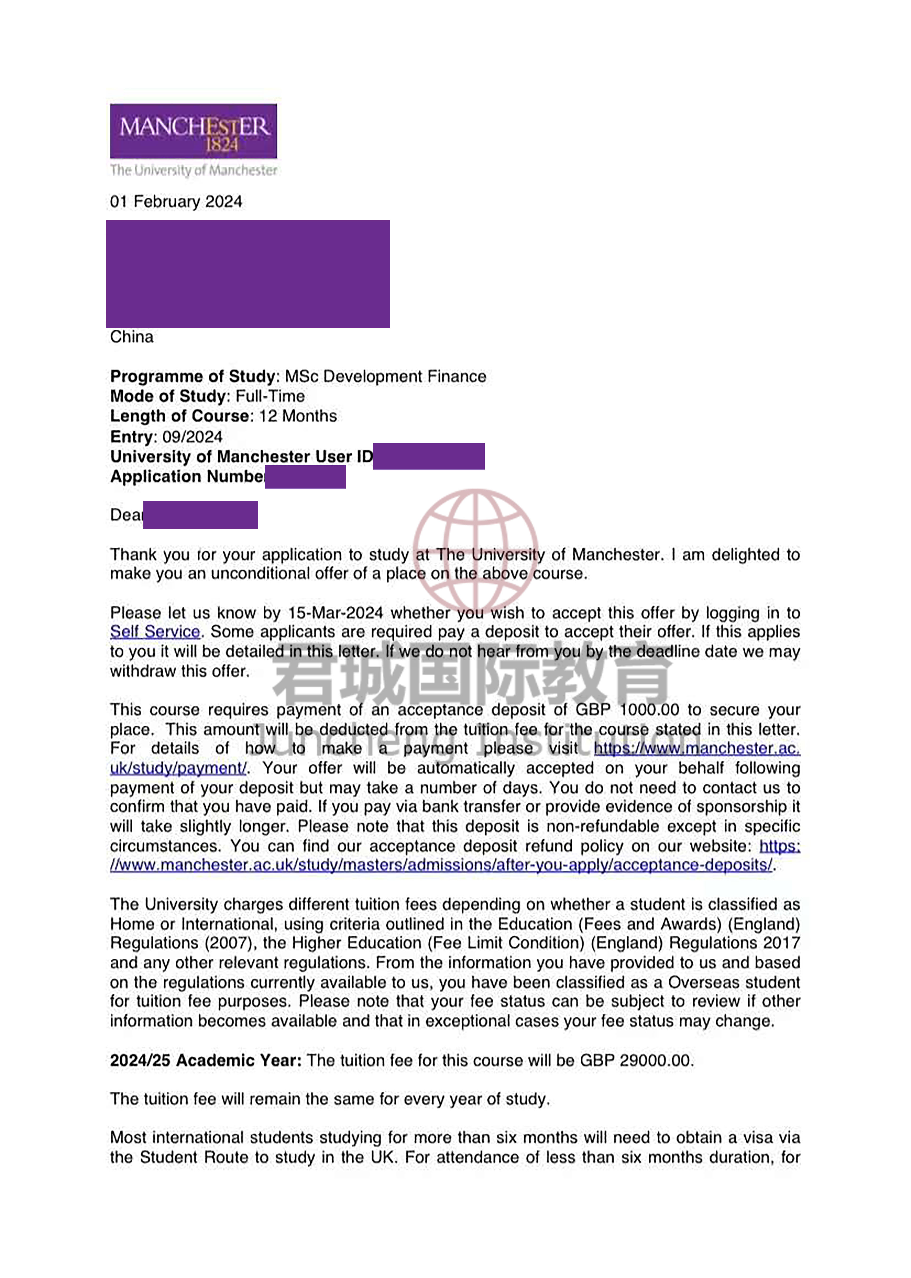 录取Offer:曼彻斯特大学 Manchester University