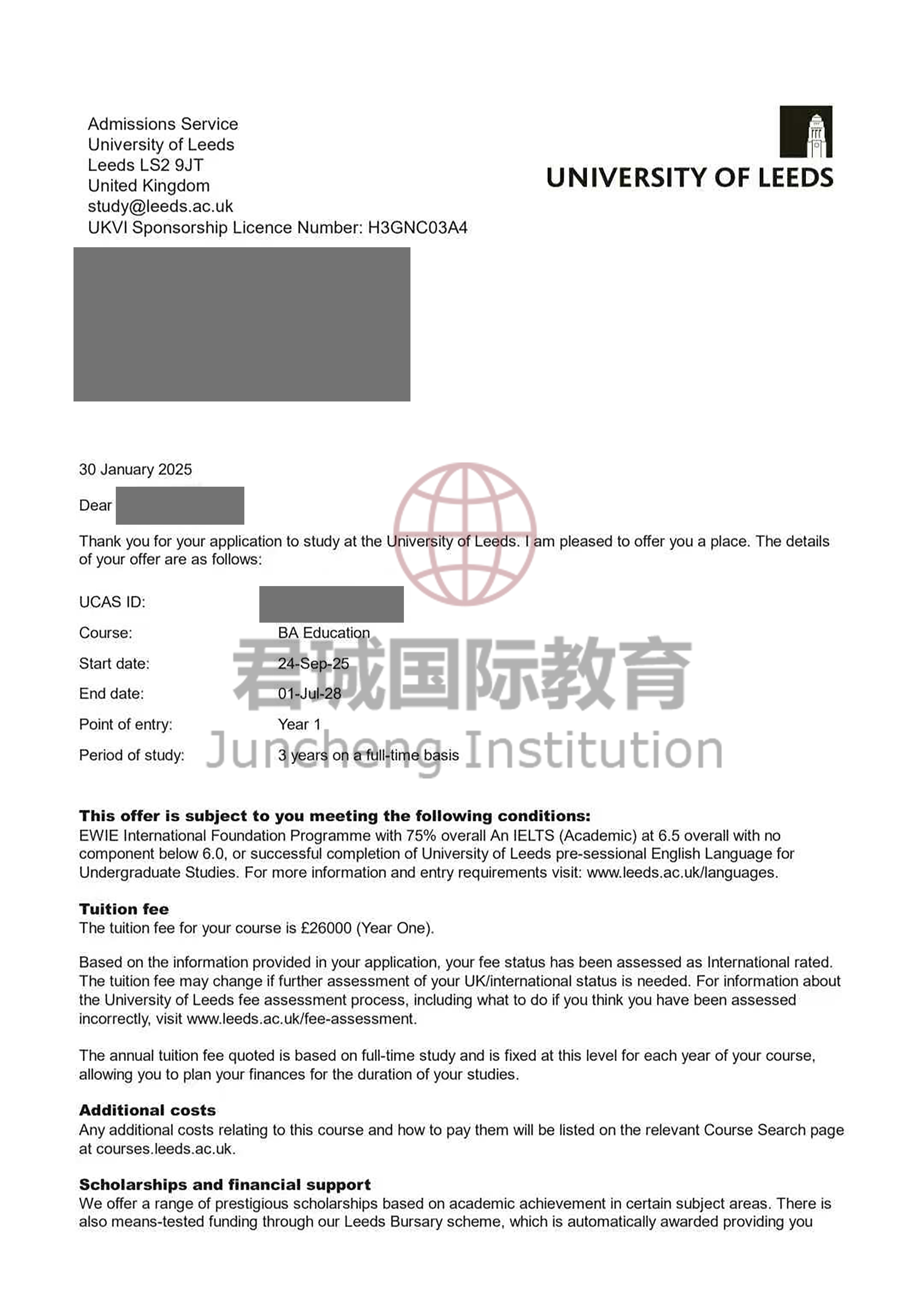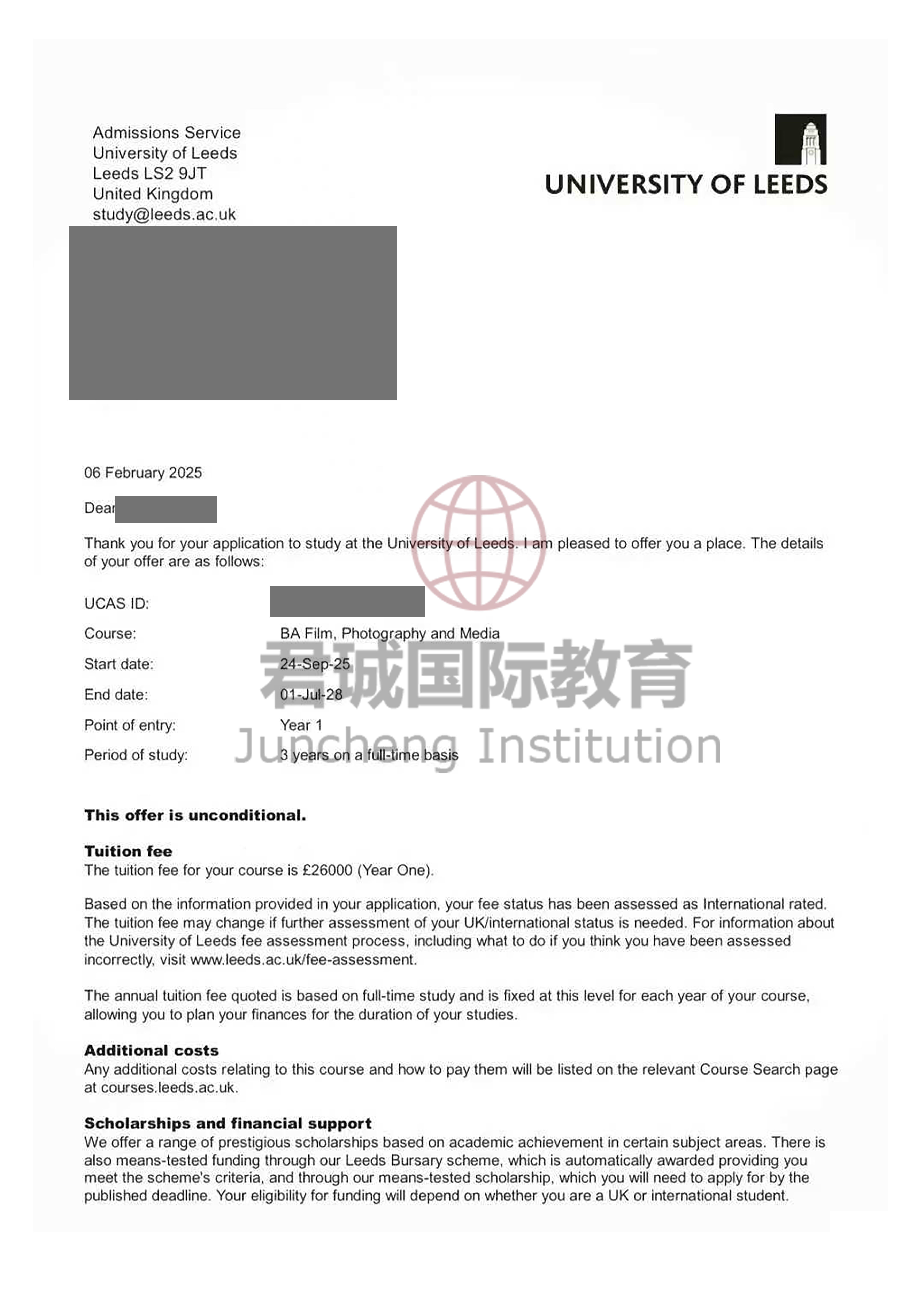 录取Offer:英国利兹大学 University of Leeds