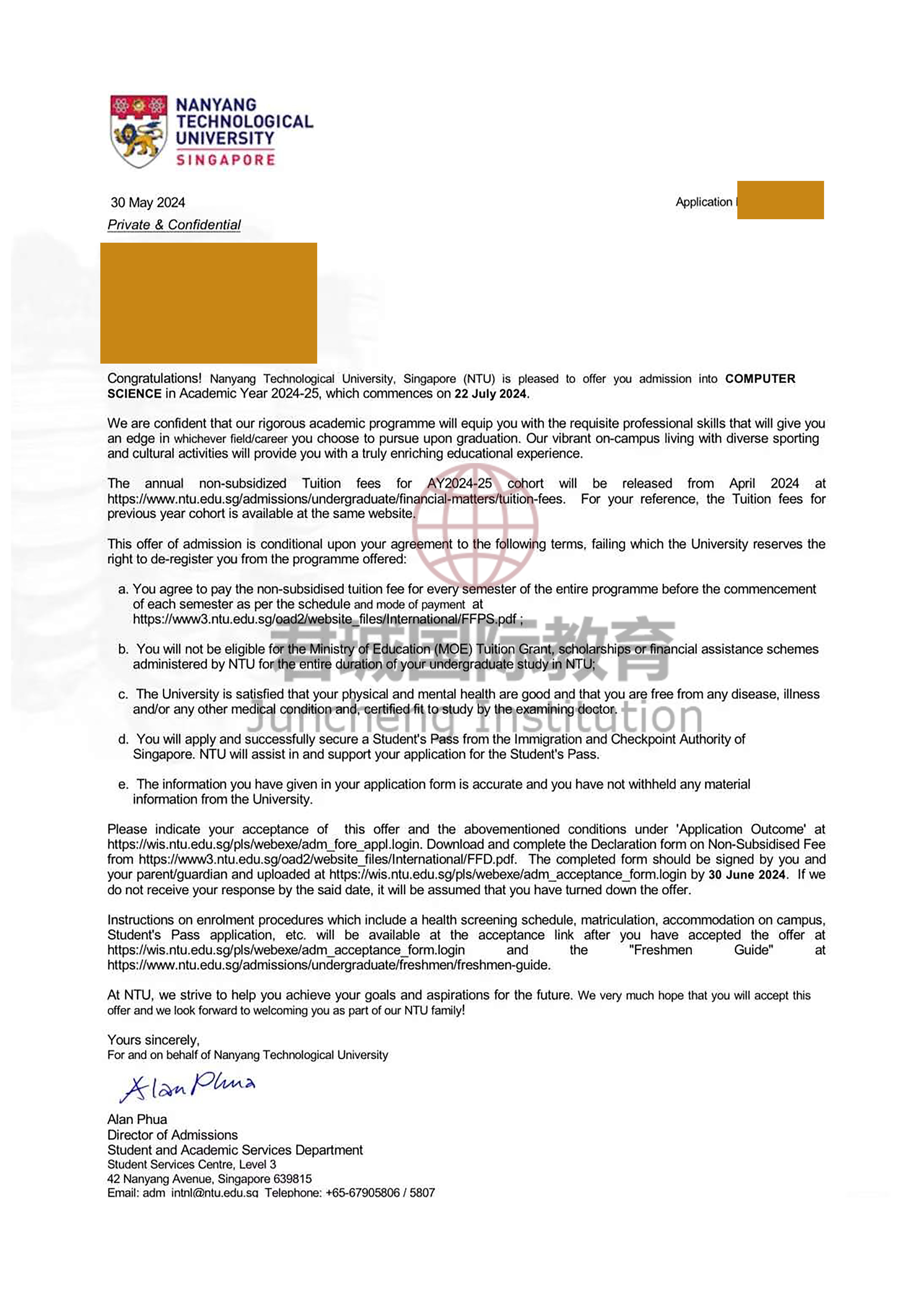 录取Offer:南洋理工大学 Nanyang Technological University, Singapore