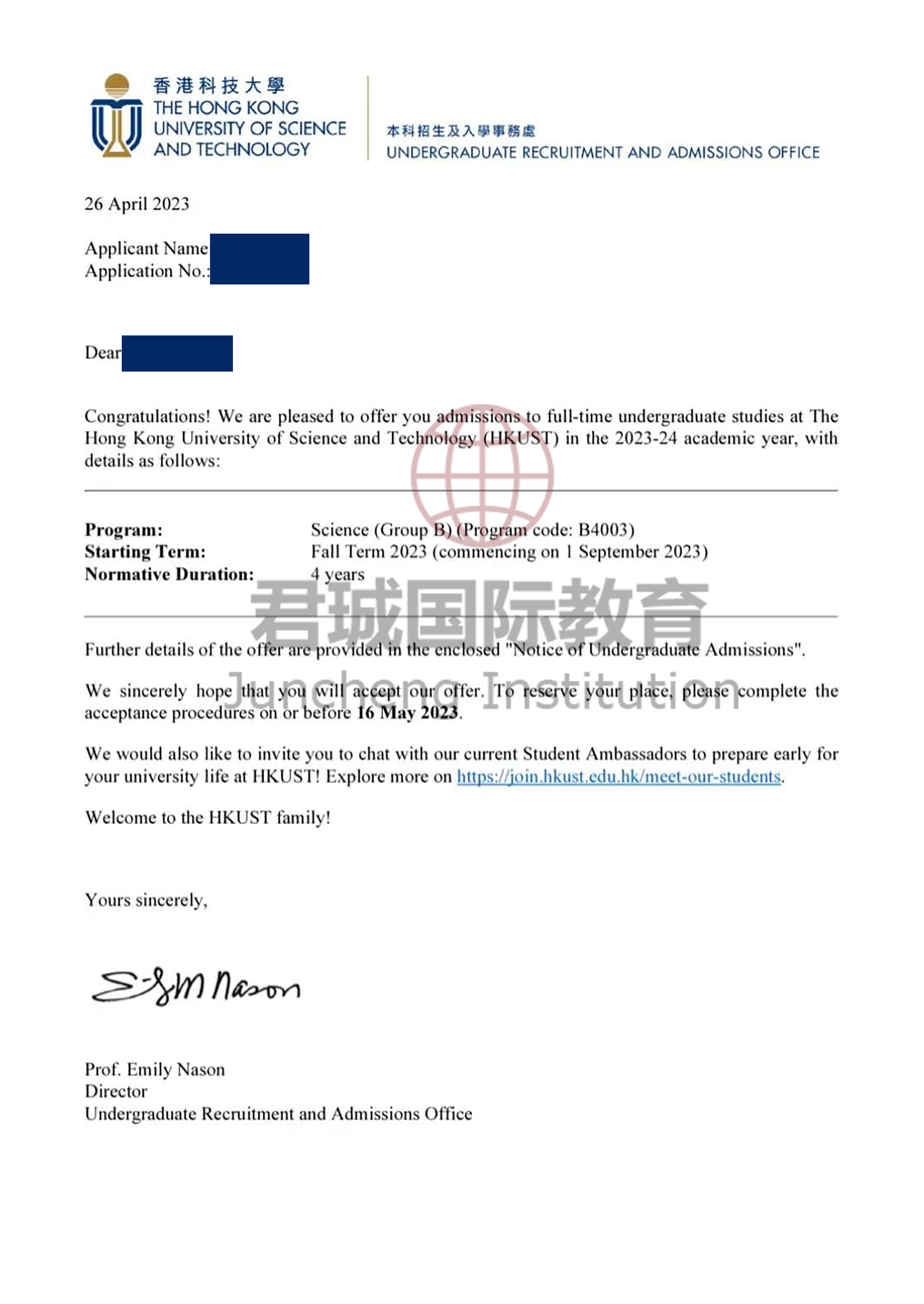 录取Offer:香港科技大学 Hong Kong University of Science and Technology